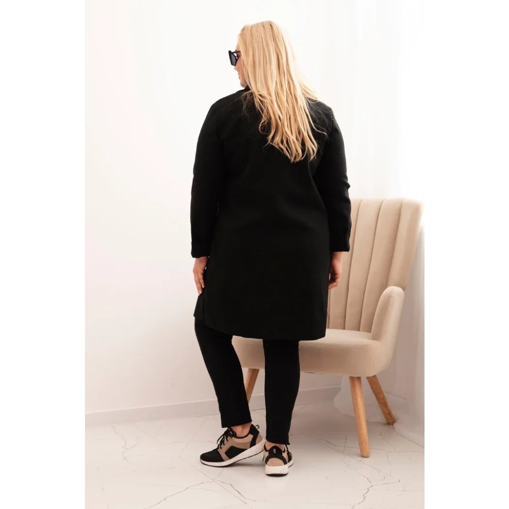 Tento klasický dámský kabát Plus Size je nadčasovým návrhem pro ženy, které si cení jednoduchosti, elegance a pohodlí. Model je vyroben z příjemného materiálu s jednolitou strukturou, má dvouřadé zapínání na knoflíky, široký límec a praktické, velké kapsy s ozdobnou nášivkou. Volný, jednoduchý střih skvěle sedí na postavě a zajišťuje volnost pohybu.