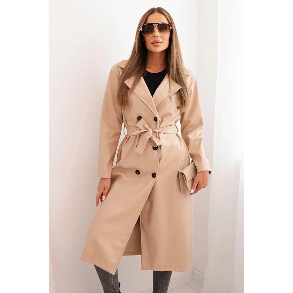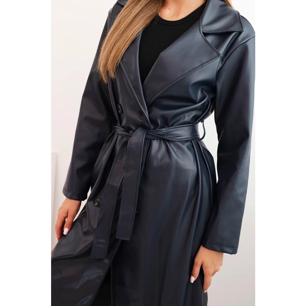 Dámský kabát ART4403 z eko kůže s páskem a límcem