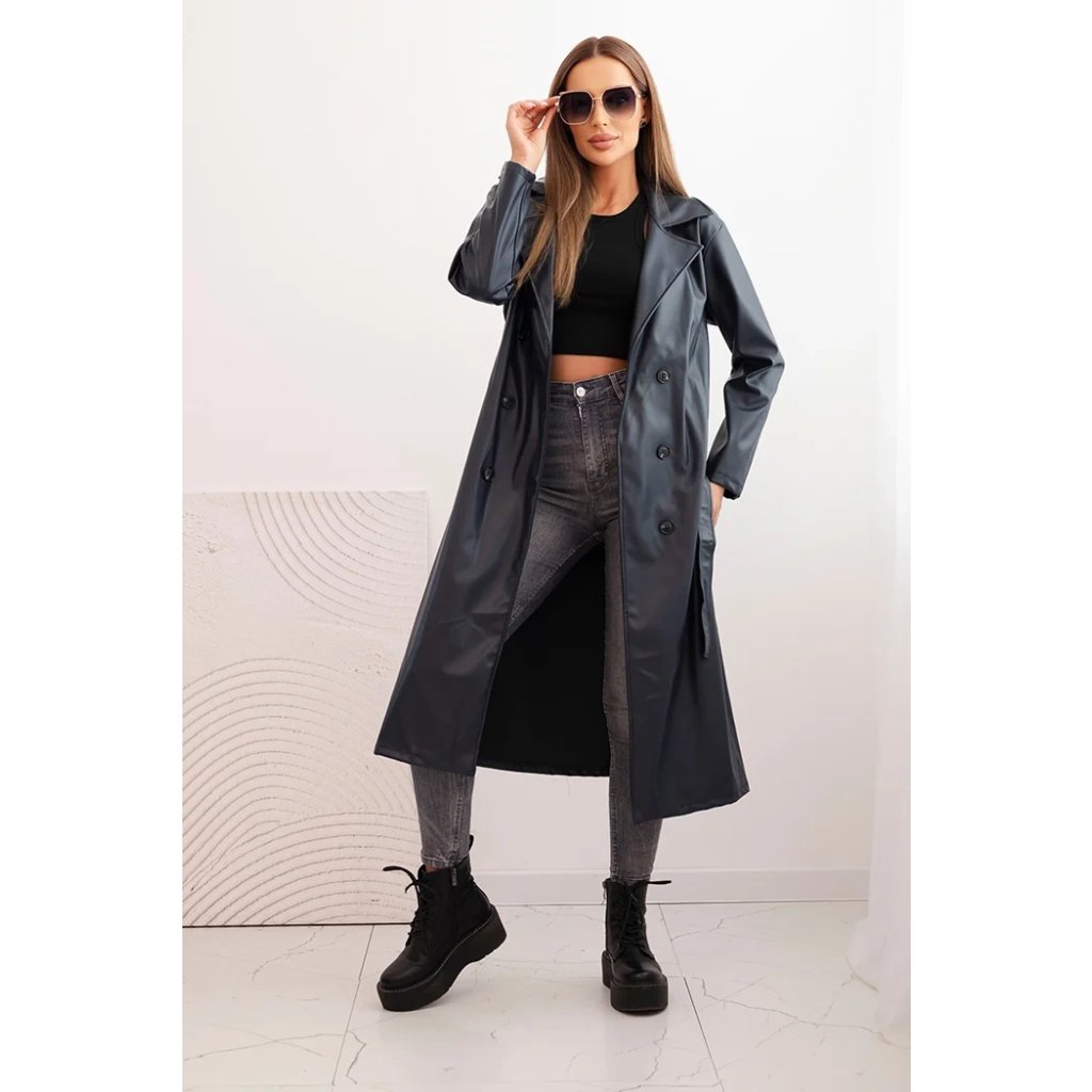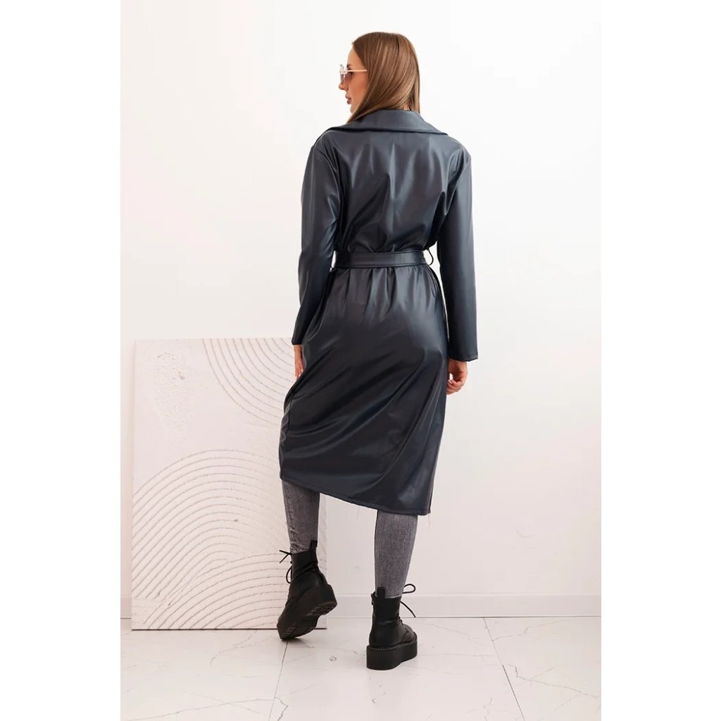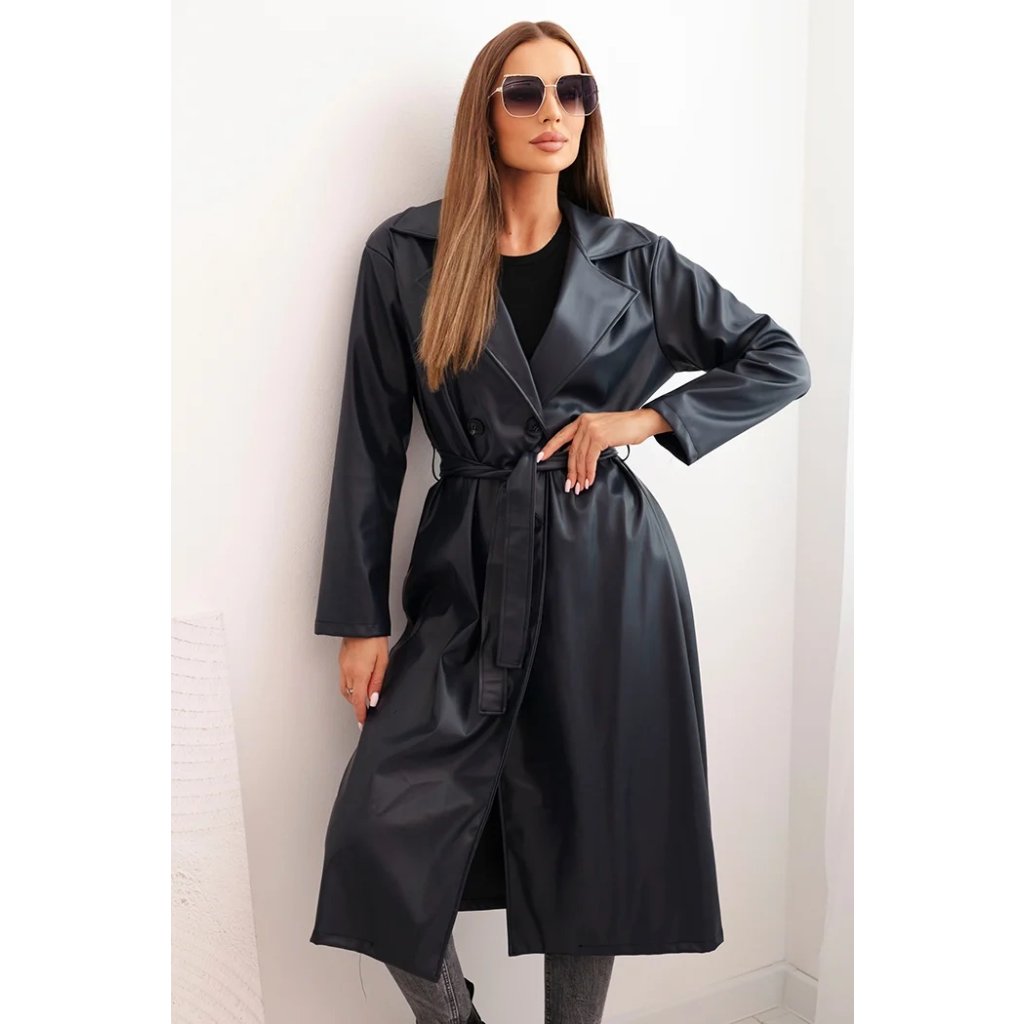 Dámský kabát ART4403 z eko kůže s páskem a límcem