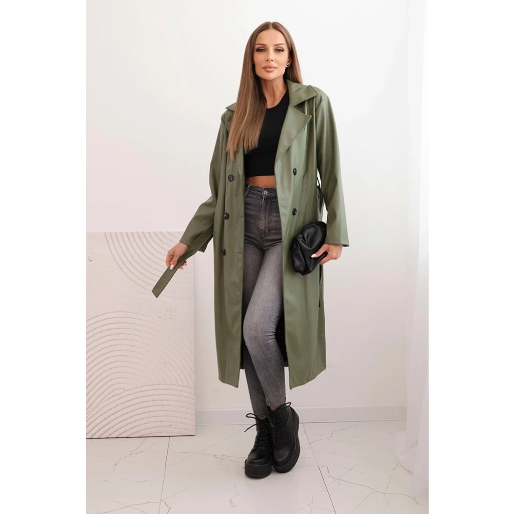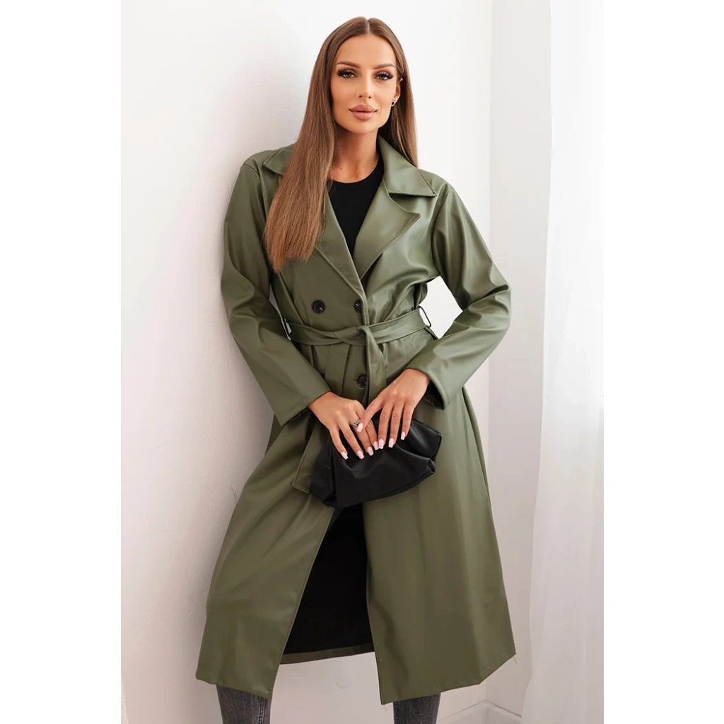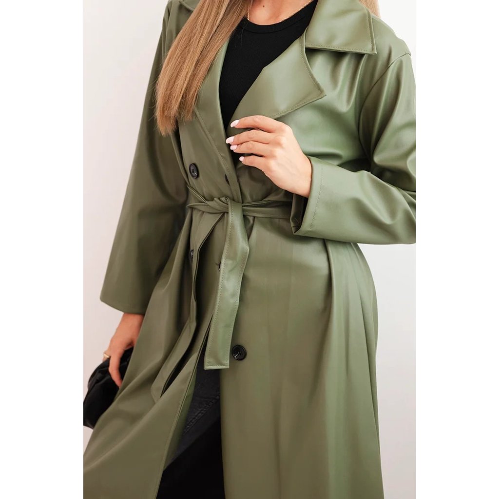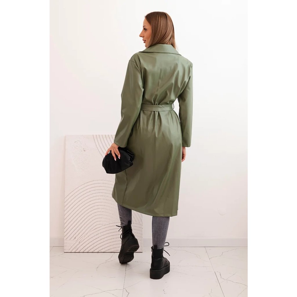 Dámský kabát ART4403 z eko kůže s páskem a límcem