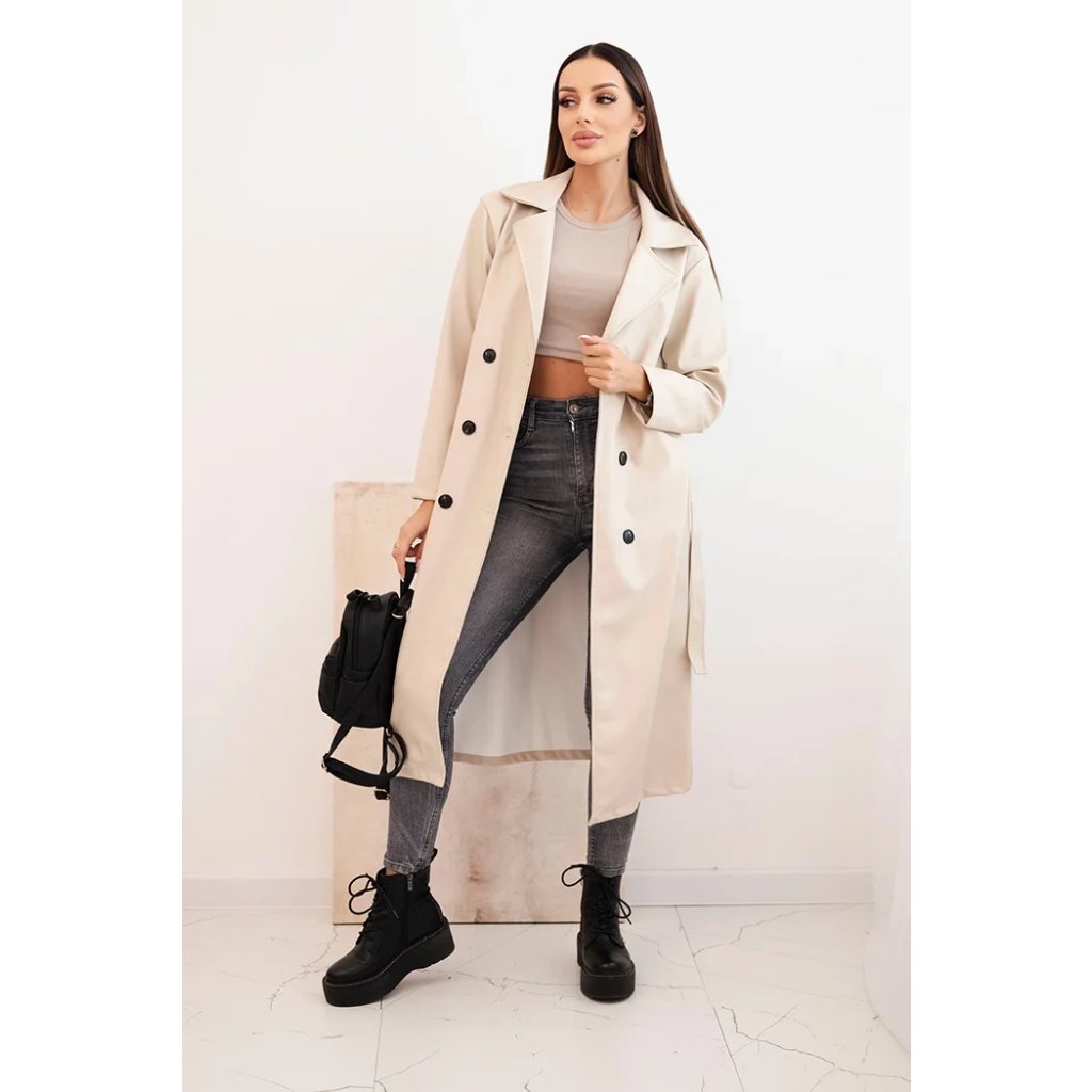 Elegantní dámský kabát s klasickým, prodlouženým střihem je skvělým návrhem na podzimní a zimní sezónu pro ženy, které ocení styl a pohodlí. Model je vybaven širokým límcem, praktickými kapsami a páskem v pase, který krásně zvýrazňuje siluetu. Délka nad kolena a dvojité zapínání na knoflíky dodávají kabátu elegantní, nadčasový charakter.