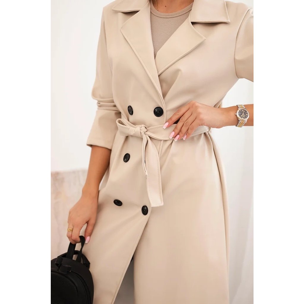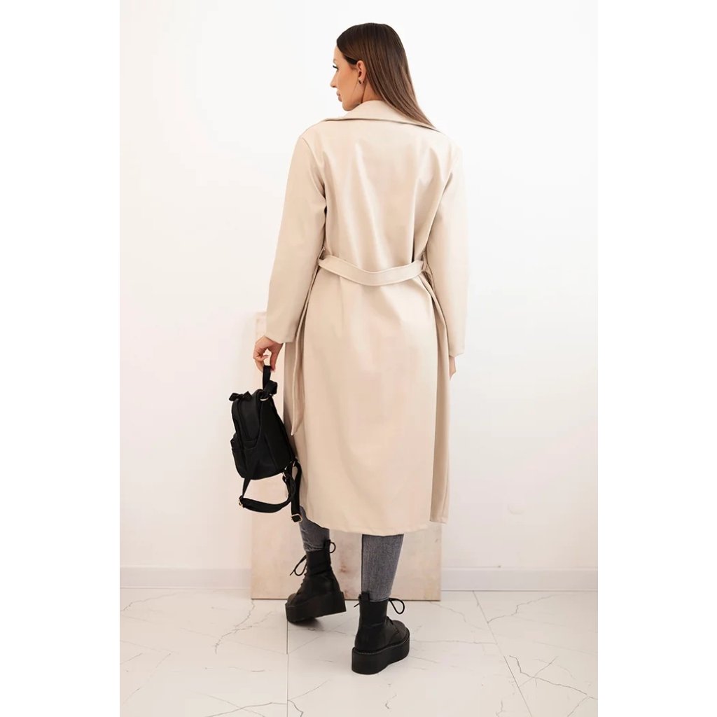 Dámský kabát ART4403 z eko kůže s páskem a límcem