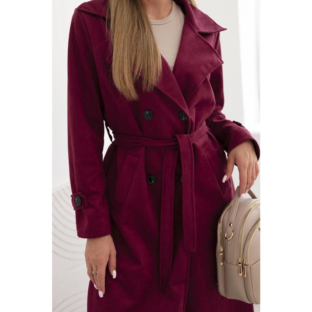 Elegantní dámský kabát s klasickým, prodlouženým střihem je skvělým návrhem na podzimní a zimní sezónu pro ženy, které ocení styl a pohodlí. Model je vybaven širokým límcem, praktickými kapsami a páskem v pase, který krásně zvýrazňuje siluetu. Délka nad kolena a dvojité zapínání na knoflíky dodávají kabátu elegantní, nadčasový charakter.