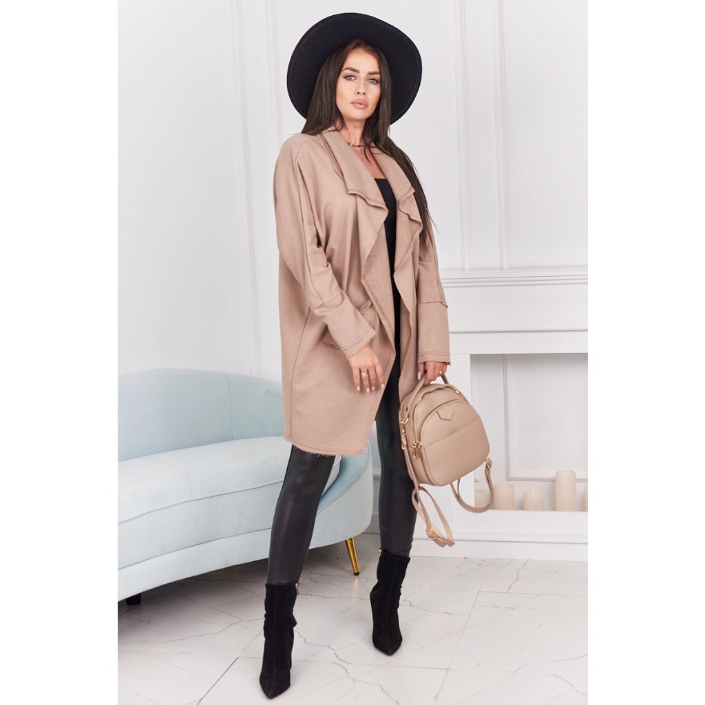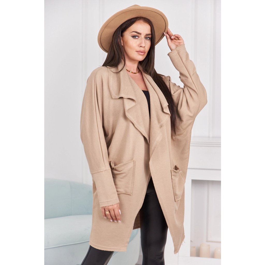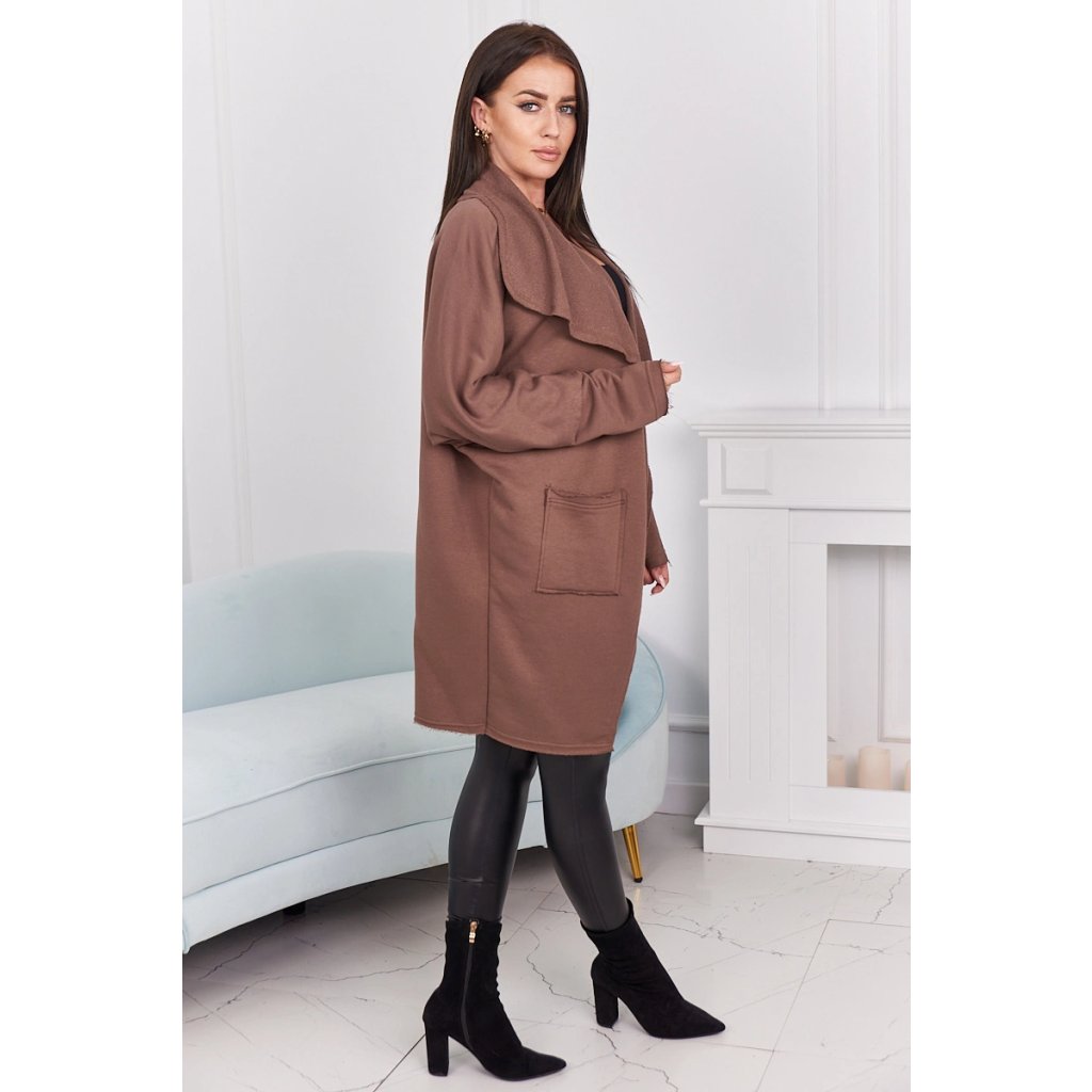 Dámský kabát s kapsami je esencí pohodlí a stylu v jednom. Je dokonalým doplňkem vašeho šatníku a umožní vám užívat si každodenního pohodlí. Kapsy přidávají funkčnost a umožňují vám pohodlně uložit malé předměty, jako jsou klíče nebo telefon, aniž byste museli sahat po dalších taškách nebo peněženkách. Je perfektní jako vrstva v chladnějších dnech, poskytuje příjemné teplo a ochranu před větrem. Neplní však pouze ochrannou roli – jeho tvar a střih jsou navrženy tak, aby dodaly kouzlo každému outfitu. Můžete ji nosit ležérně na ramenou nebo ji nosit jako ležérní kus oblečení a dodat vašemu vzhledu jemný šmrnc. Je skvělým příkladem spojení praktičnosti a estetiky a vytváří stylový vzhled, který jistě přitáhne pozornost. Bez ohledu na příležitost - ať už je to procházka po městě nebo neformální setkání s přáteli. S kapsami je připravena čelit jakékoli výzvě a zajišťuje pohodlí a svobodu pohybu. Plášť je vyroben z vysoce kvalitního materiálu.