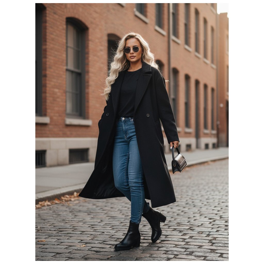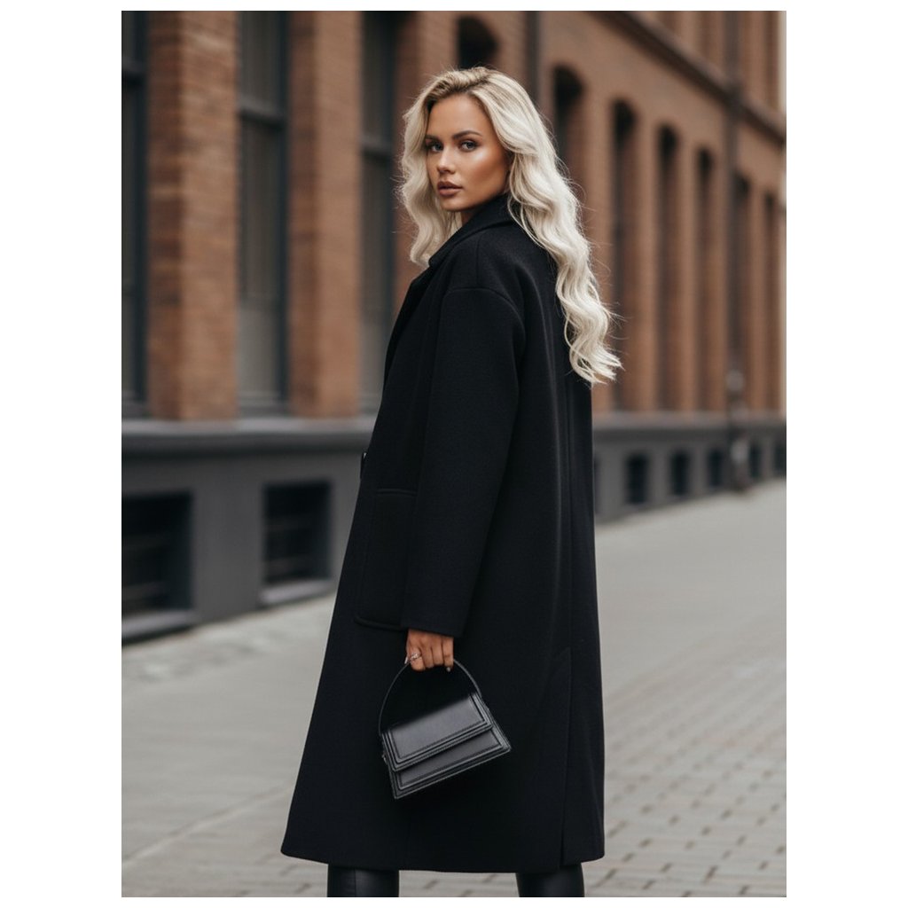 Tento dlouhý dámský oversized kabát kombinuje klasickou eleganci s moderním ležérním stylem. Zapíná se na knoflík a má praktické boční kapsy pro větší funkčnost. Díky jednoduchému, ale stylovému střihu je vhodný jak pro každodenní outfity, tak i pro elegantnější outfity.