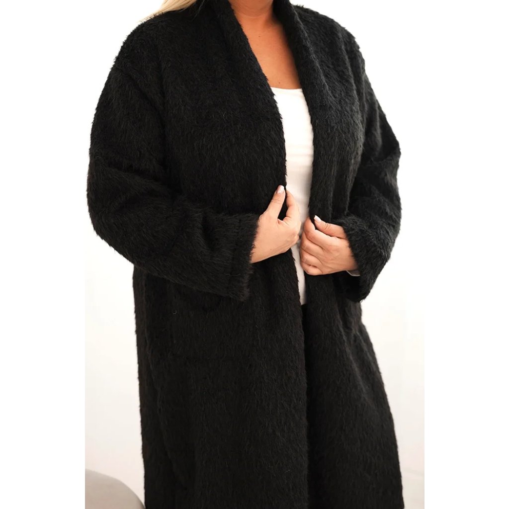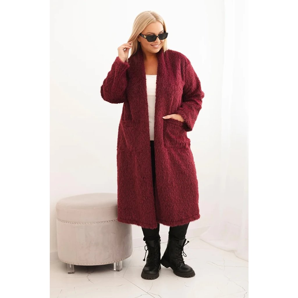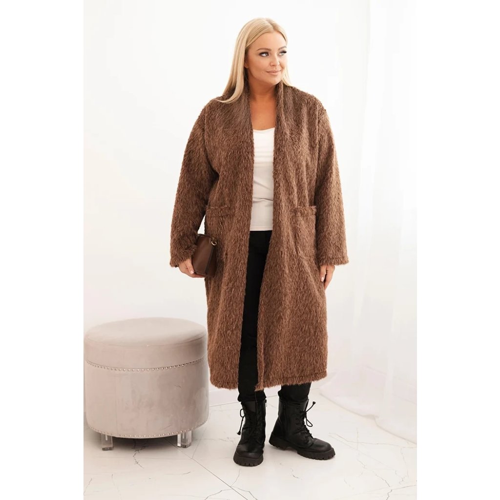 Dámský kabát Plus Size 21789 z viskózy bez zapínání a s kapsami