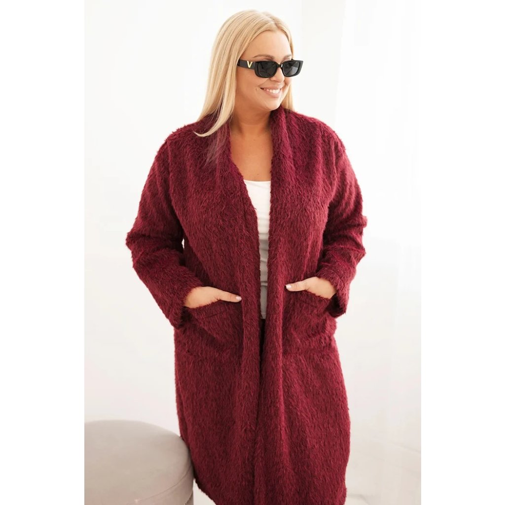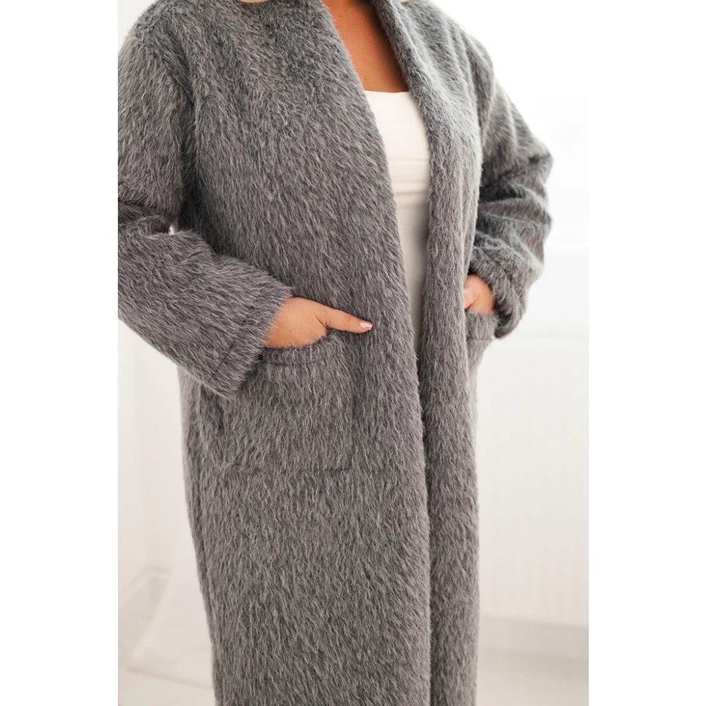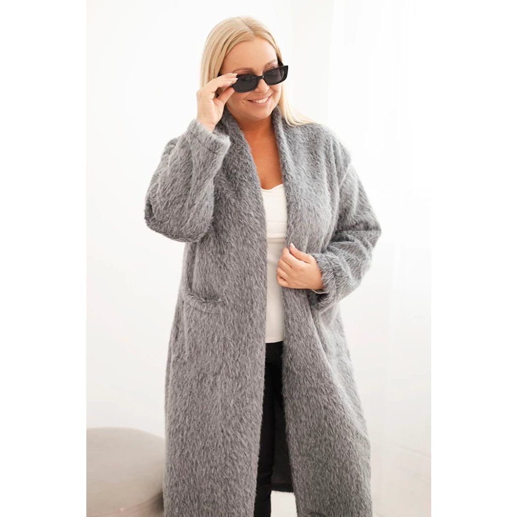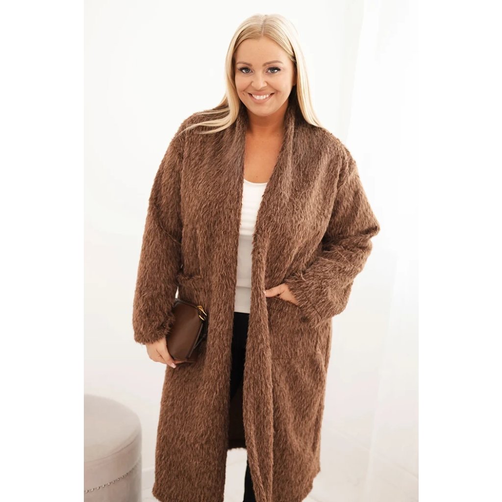 Dámský kabát Plus Size 21789 z viskózy bez zapínání a s kapsami