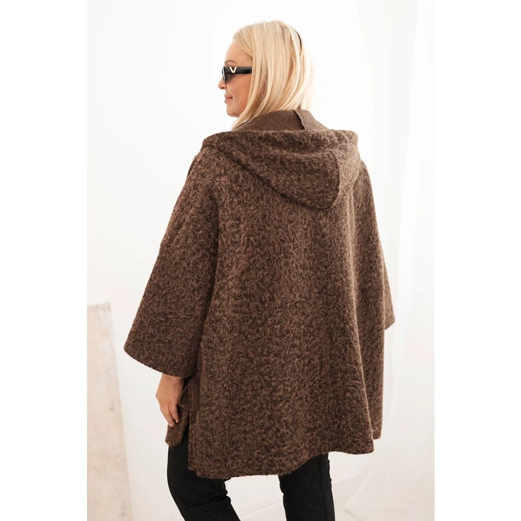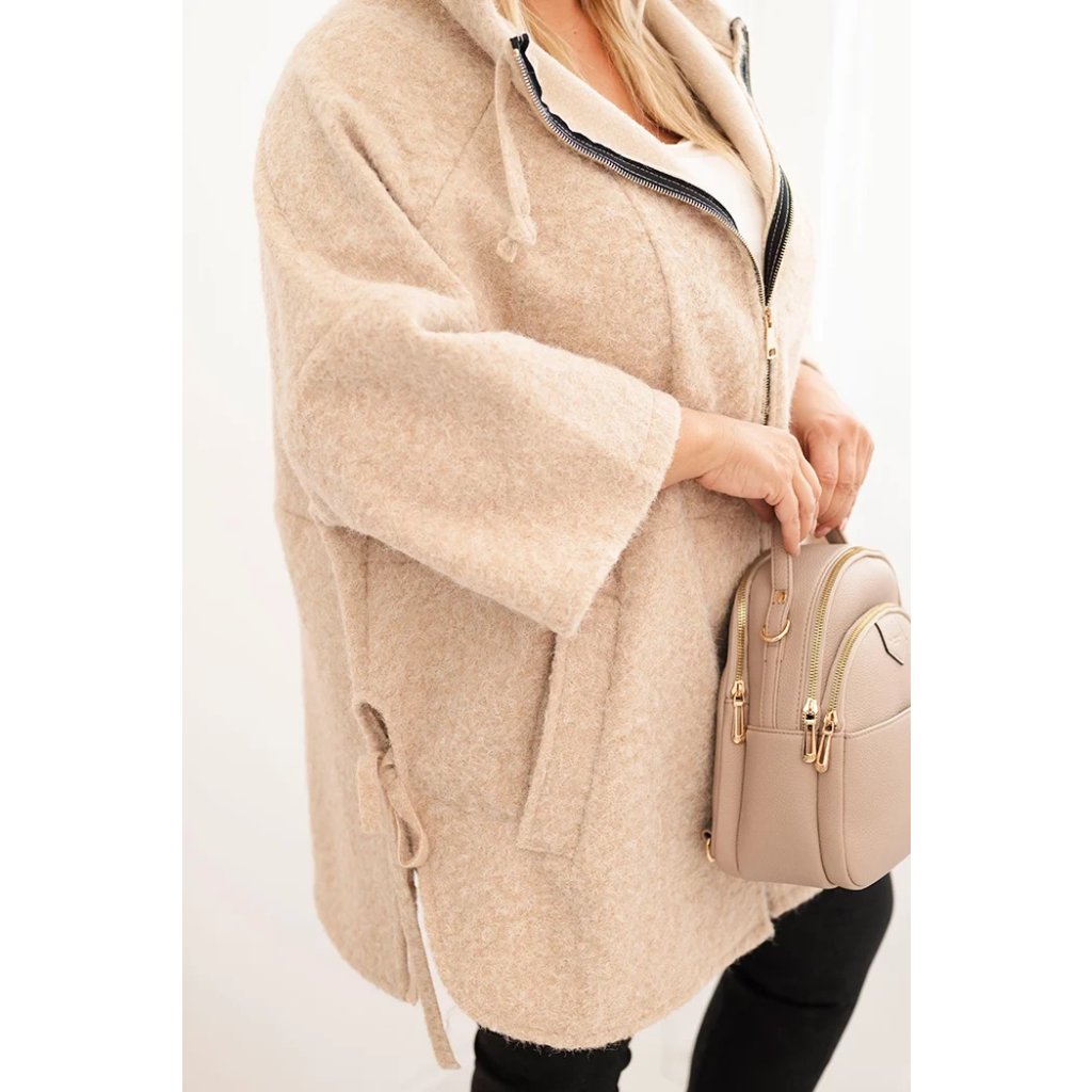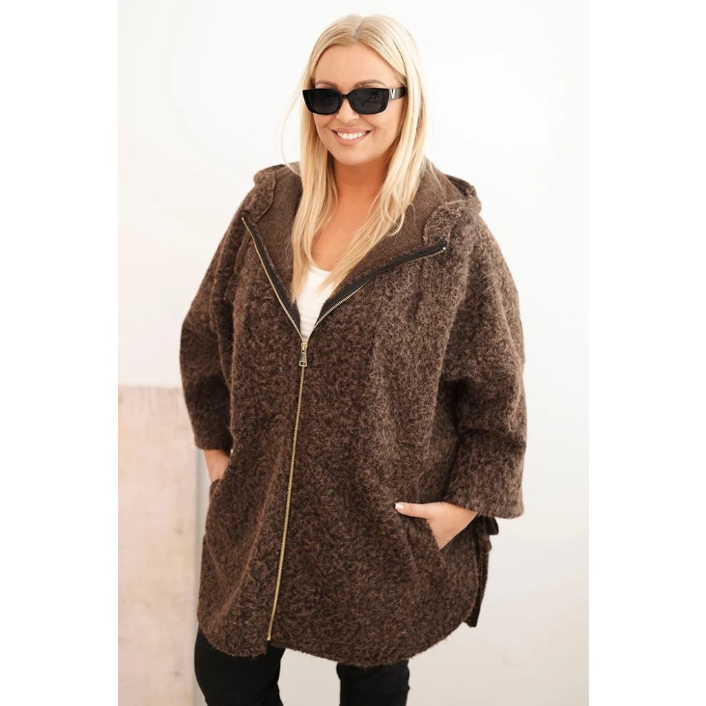 Dámský kabát Plus Size s kapucí a zipem hnědý