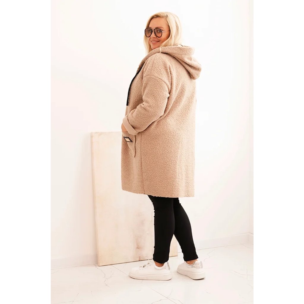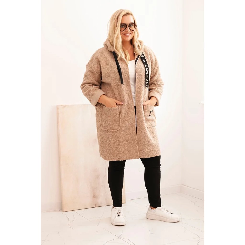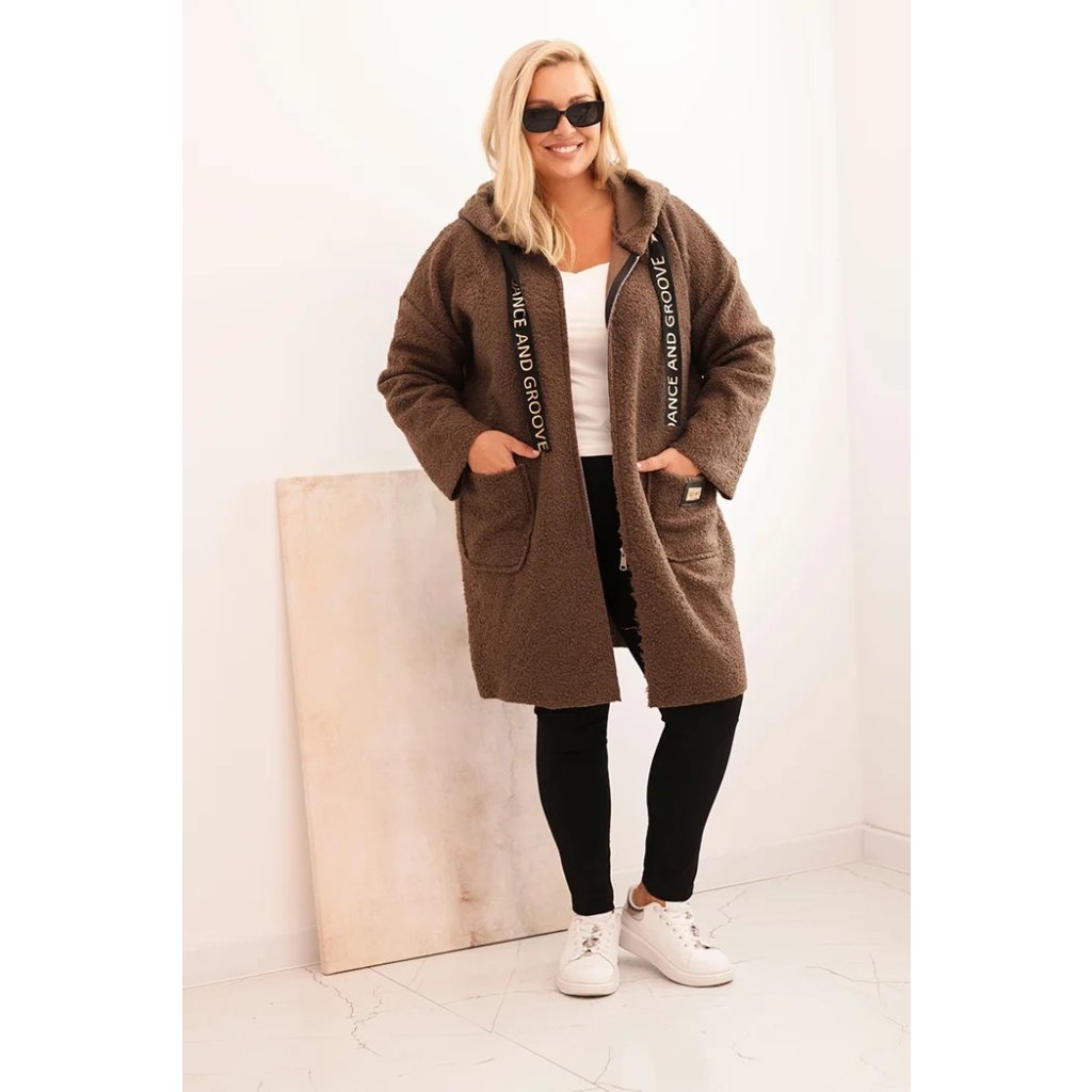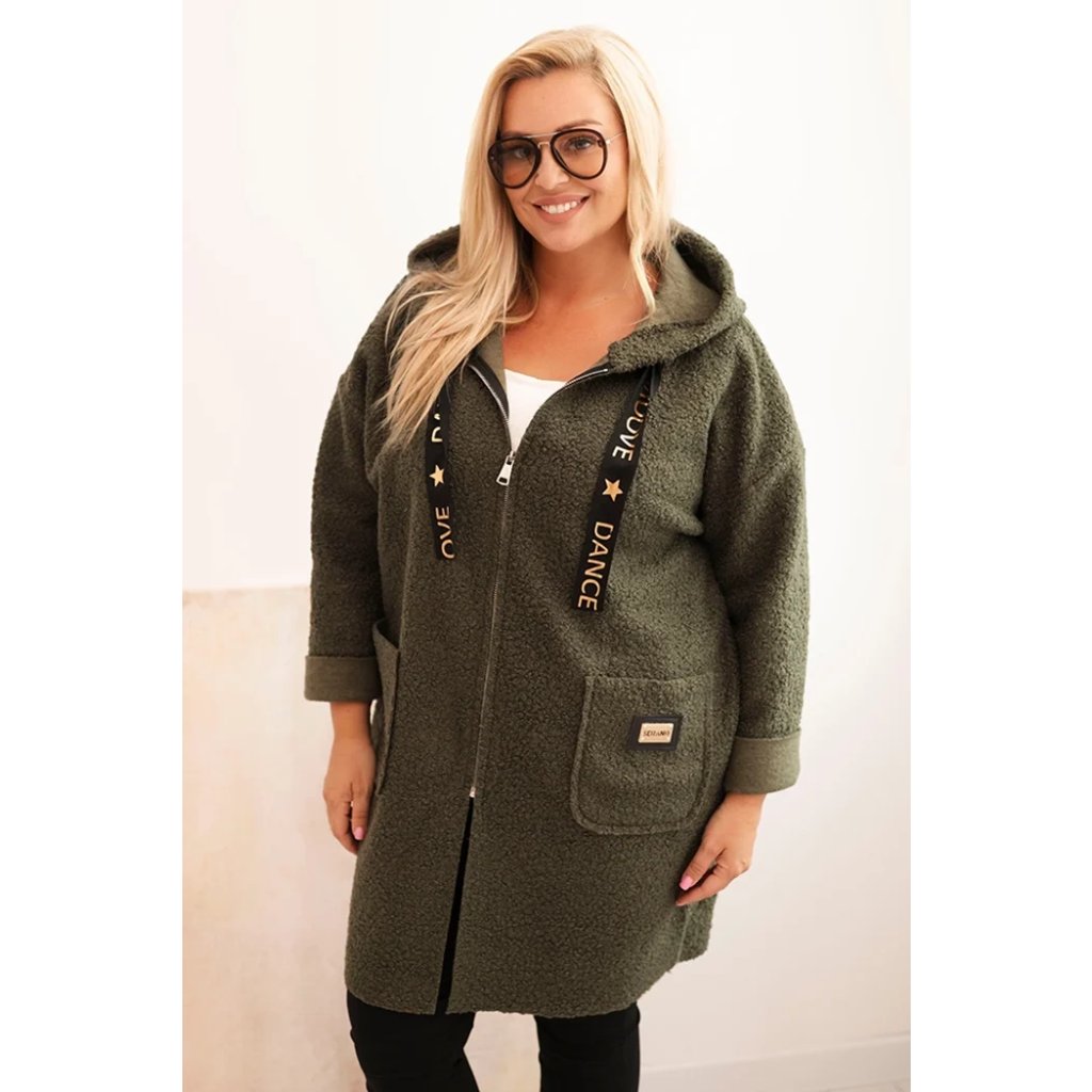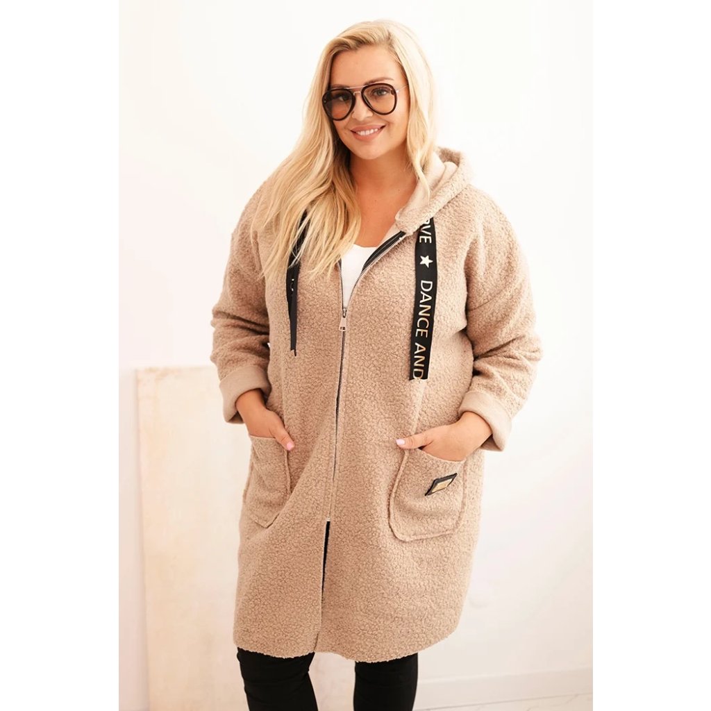 Pohodlná dámská mikina Plus Size v oversize střihu je ideální volbou na chladnější dny. Vyrobena z měkkého, teplého materiálu s texturou „beránek“, zajišťuje komfort nošení a módní, uvolněný vzhled. Mikina má praktickou kapuci se zdobnými šňůrkami, velké kapsy vpředu a zip, který usnadňuje oblékání.