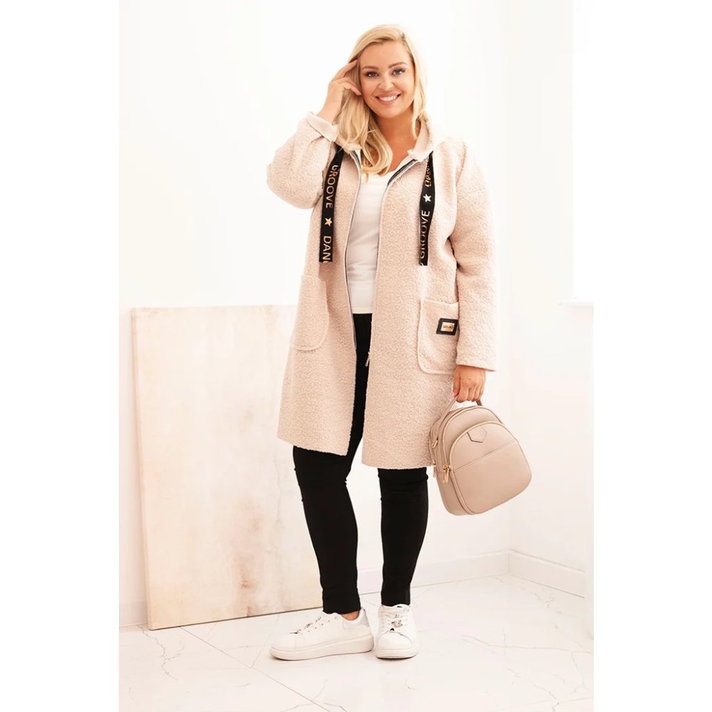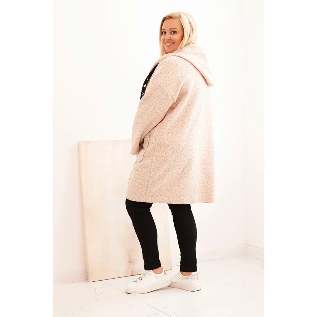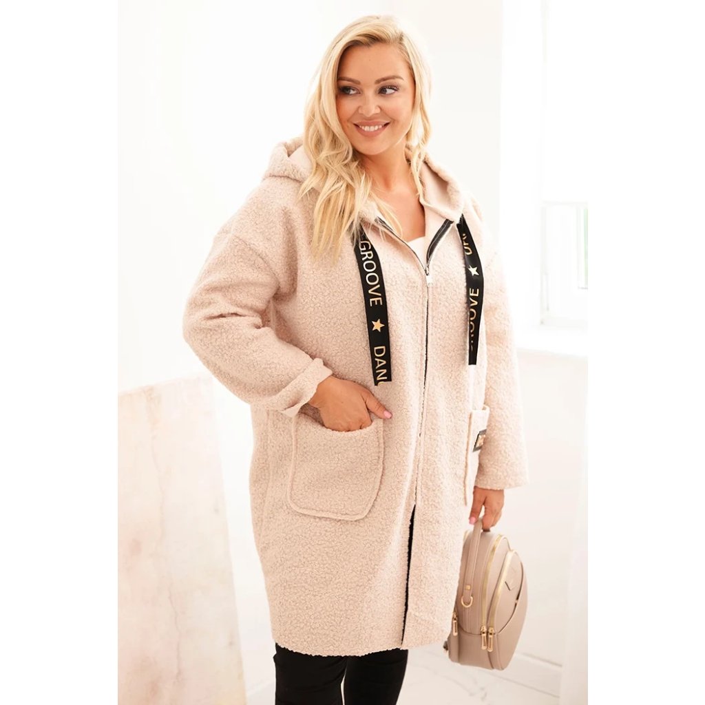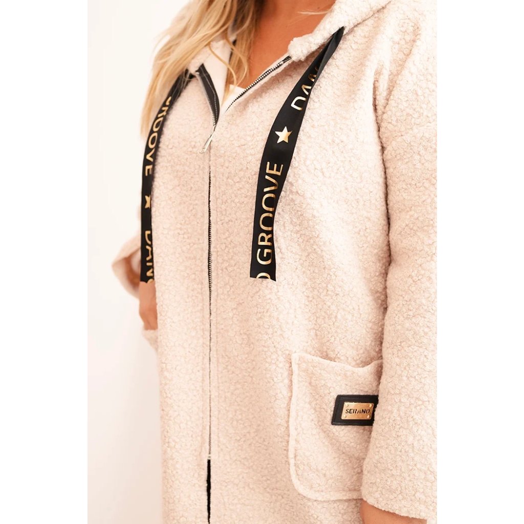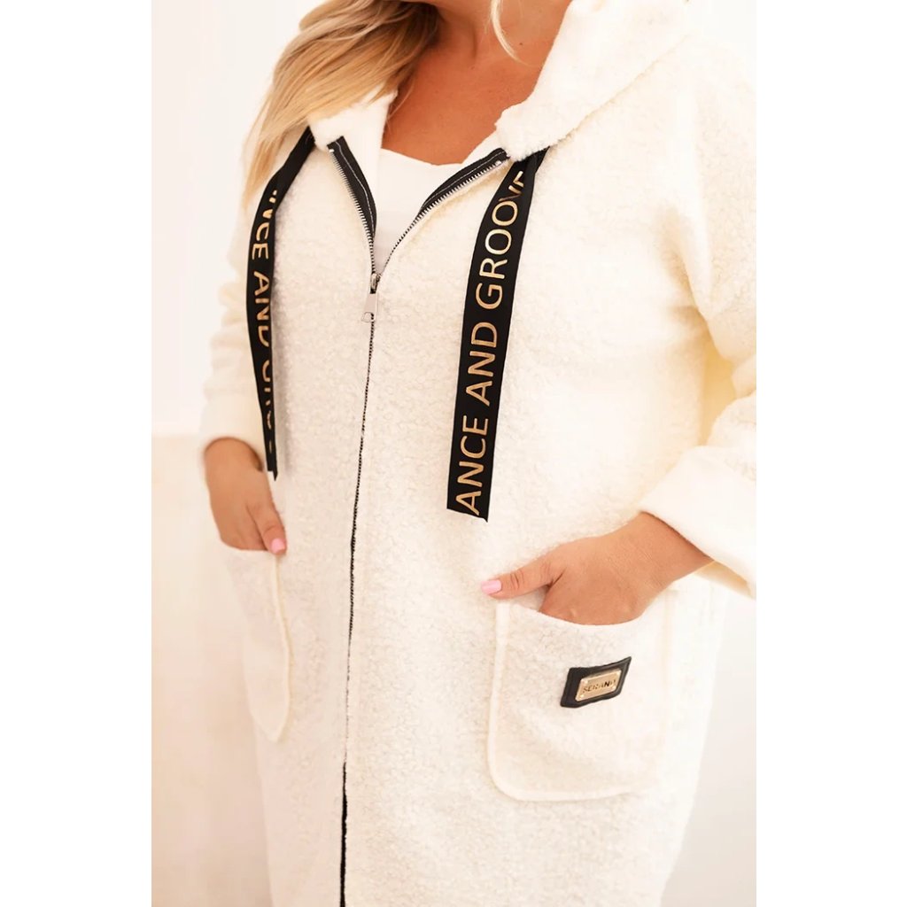 Pohodlná dámská mikina Plus Size v oversize střihu je ideální volbou na chladnější dny. Vyrobena z měkkého, teplého materiálu s texturou „beránek“, zajišťuje komfort nošení a módní, uvolněný vzhled. Mikina má praktickou kapuci se zdobnými šňůrkami, velké kapsy vpředu a zip, který usnadňuje oblékání.