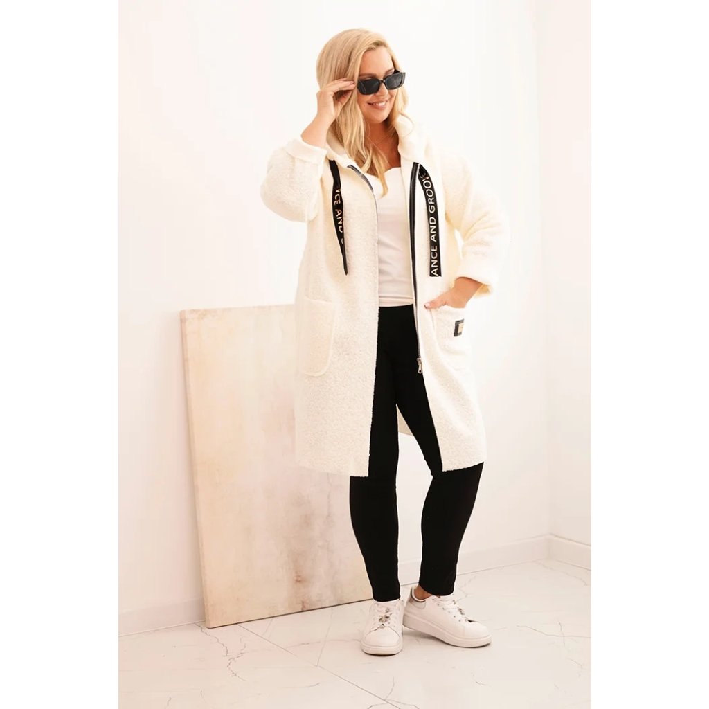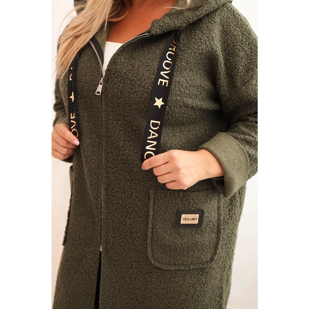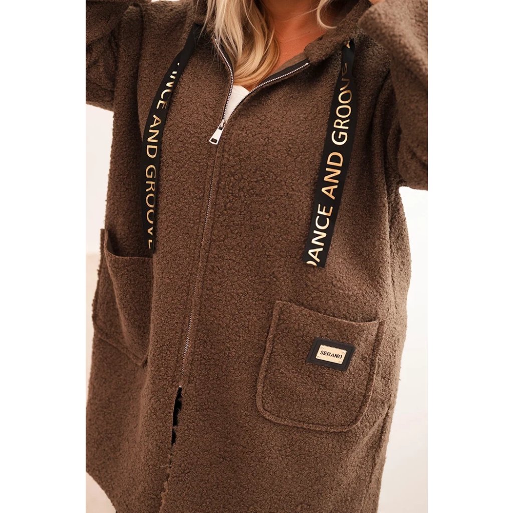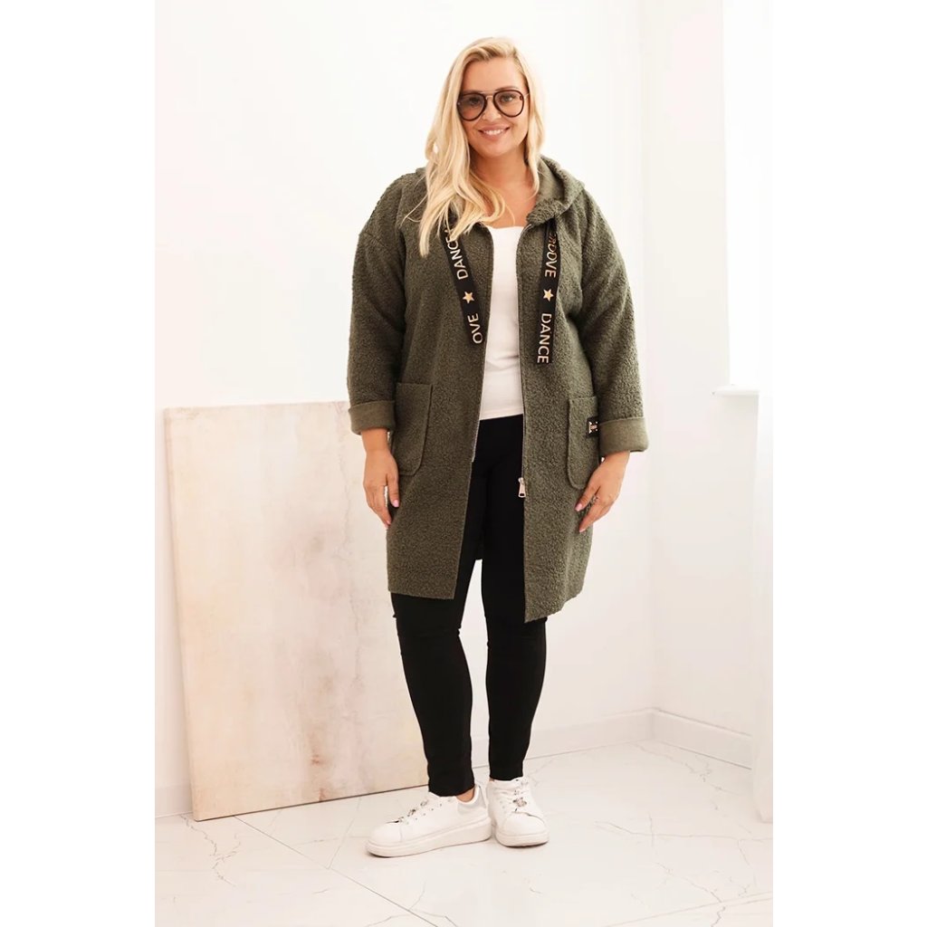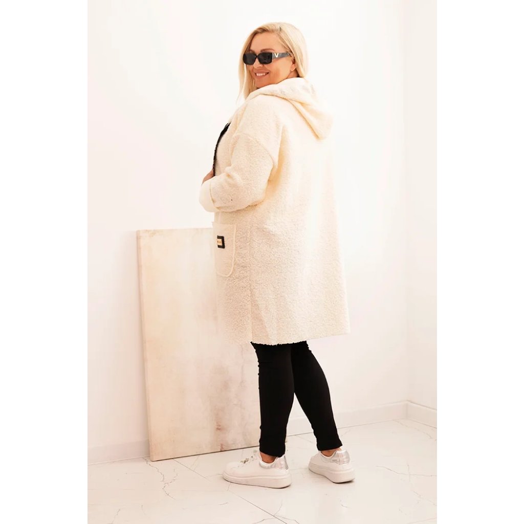Pohodlná dámská mikina Plus Size v oversize střihu je ideální volbou na chladnější dny. Vyrobena z měkkého, teplého materiálu s texturou „beránek“, zajišťuje komfort nošení a módní, uvolněný vzhled. Mikina má praktickou kapuci se zdobnými šňůrkami, velké kapsy vpředu a zip, který usnadňuje oblékání.