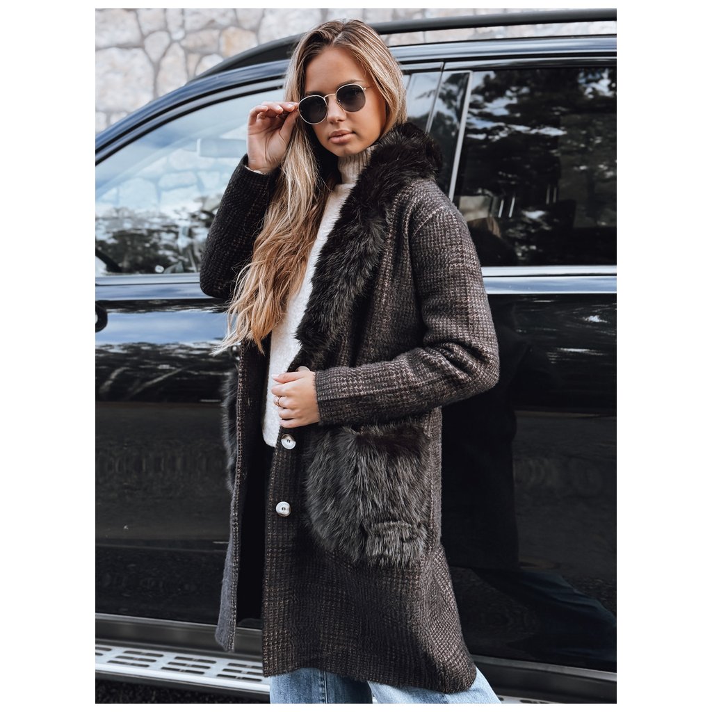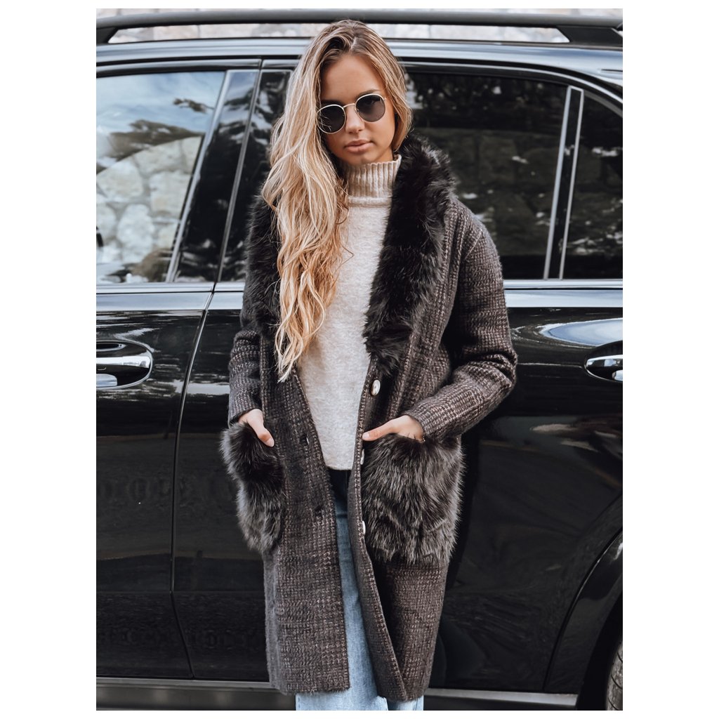 Tento kabát je vyroben ze směsi viskózy, nylonu a polyesteru a kombinuje elegantní design s funkčností. Kožešina použitá na límci a kapsách je umělá, takže se o něj snadno pečuje a je vhodný pro ty, kteří preferují ležérnější vzhled bez použití pravé kožešiny. Tento kabát se perfektně hodí jak k ležérním, tak k elegantnějším outfitům. Jeho klasický střih a střední délka z něj činí všestranný základní kousek šatníku pro chladnější dny.