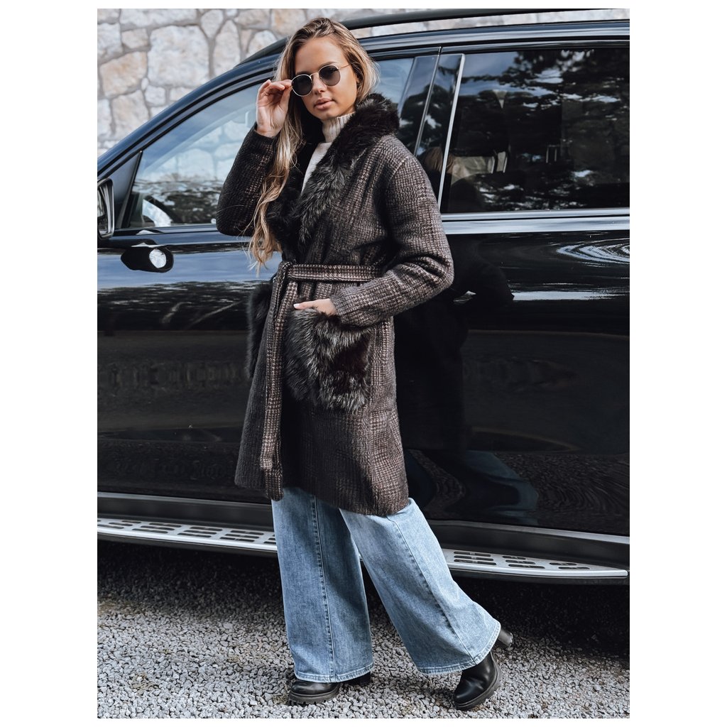 Stylová dámská bunda s klasickou siluetou a elegantním kožešinovým lemováním. Zapínání na knoflíky a další pásek v pase zajišťují pohodlné nošení. Velké boční kapsy lemované kožešinou dodávají kabátu osobitý charakter a zvyšují pohodlí. Měkký kožešinový límec dodává hřejivost a podtrhuje ženský vzhled.