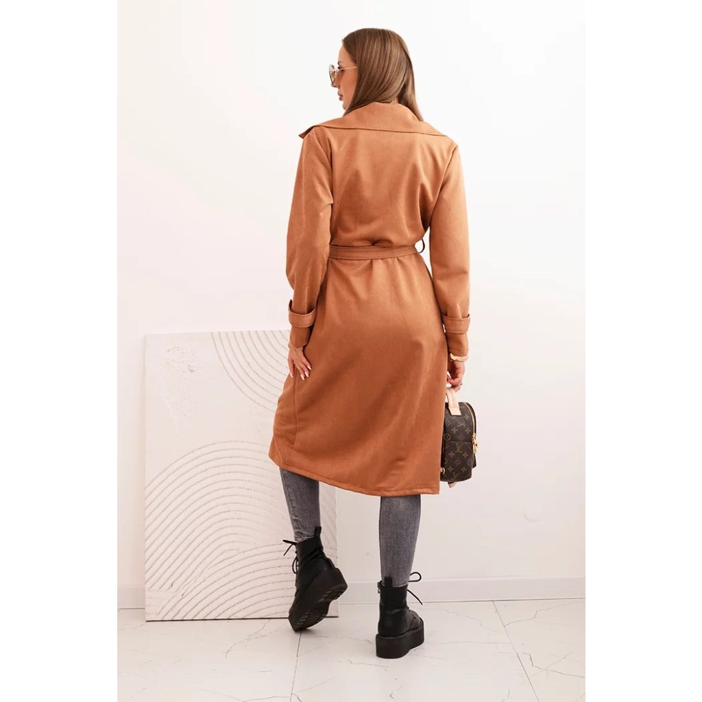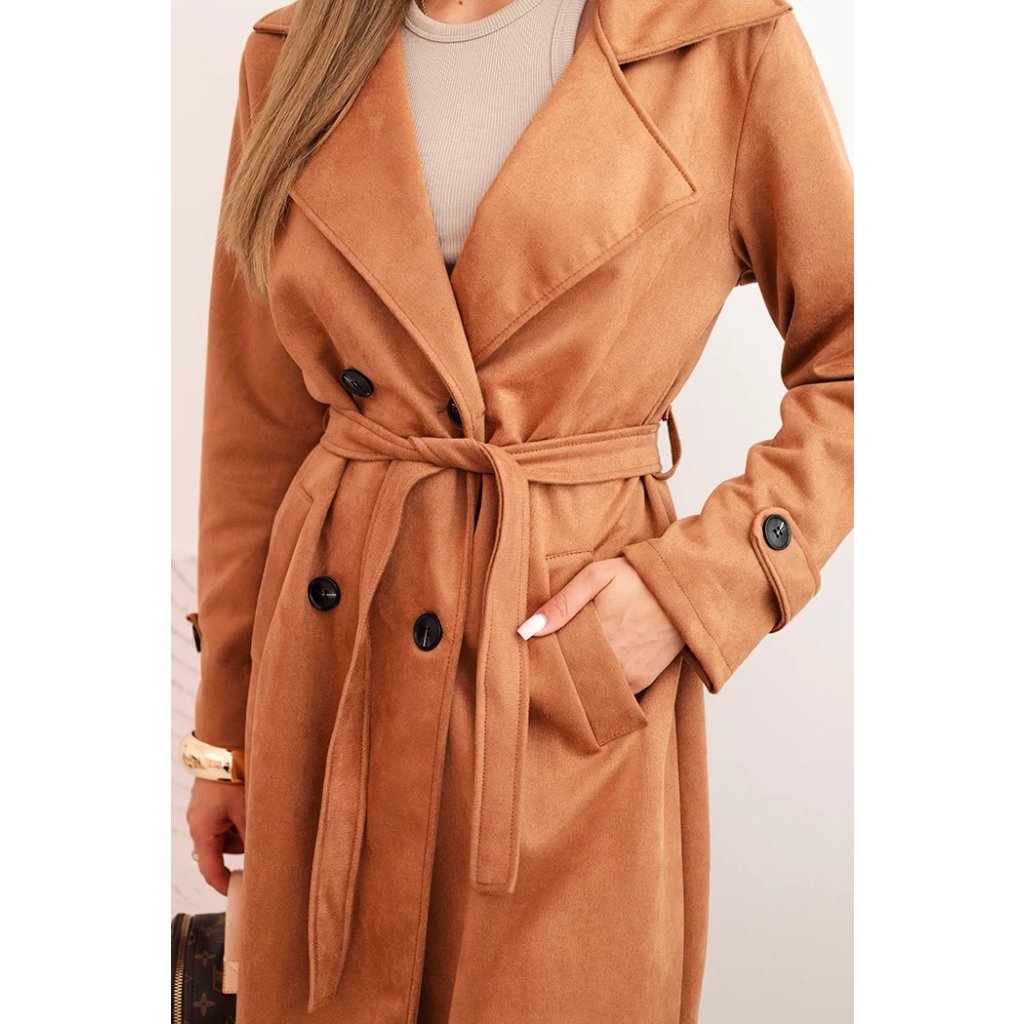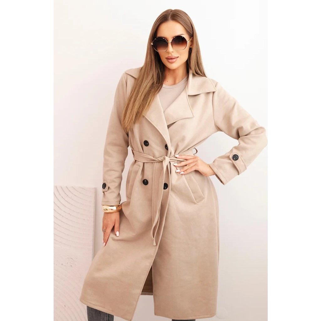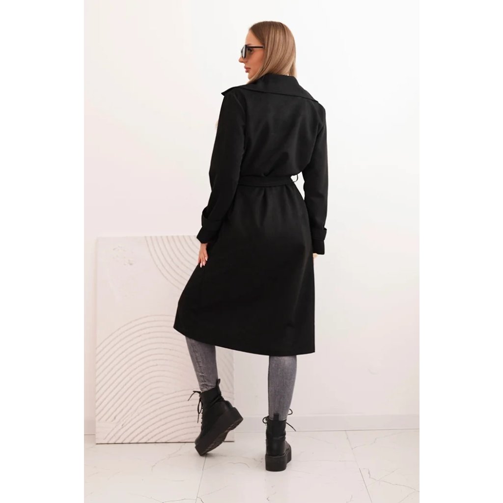 Elegantní dámský kabát s klasickým, prodlouženým střihem je skvělým návrhem na podzimní a zimní sezónu pro ženy, které ocení styl a pohodlí. Model je vybaven širokým límcem, praktickými kapsami a páskem v pase, který krásně zvýrazňuje siluetu. Délka nad kolena a dvojité zapínání na knoflíky dodávají kabátu elegantní, nadčasový charakter.
