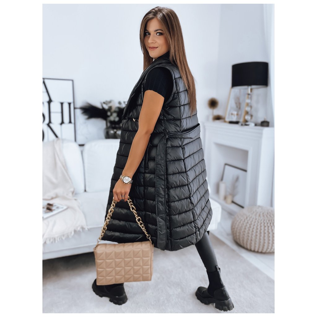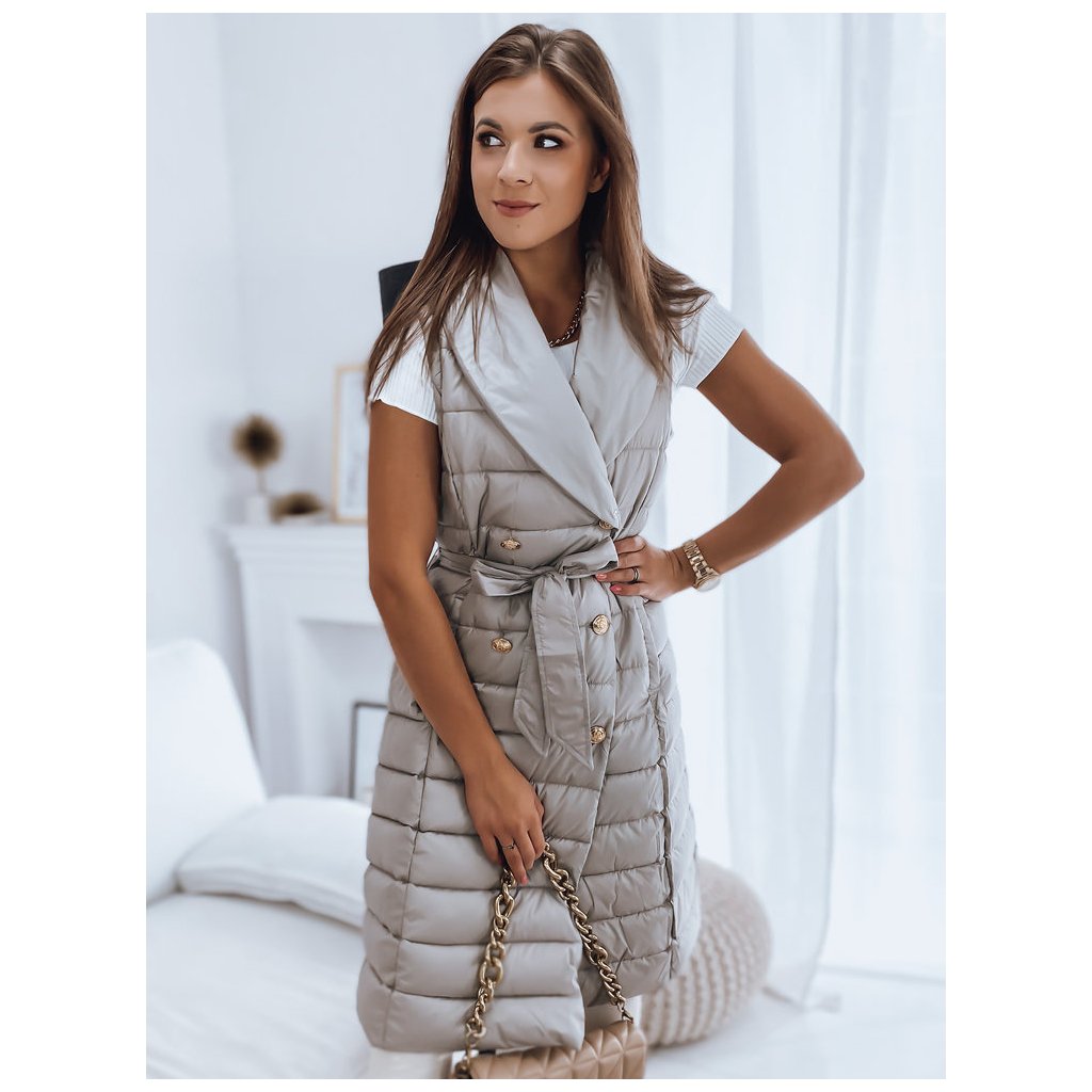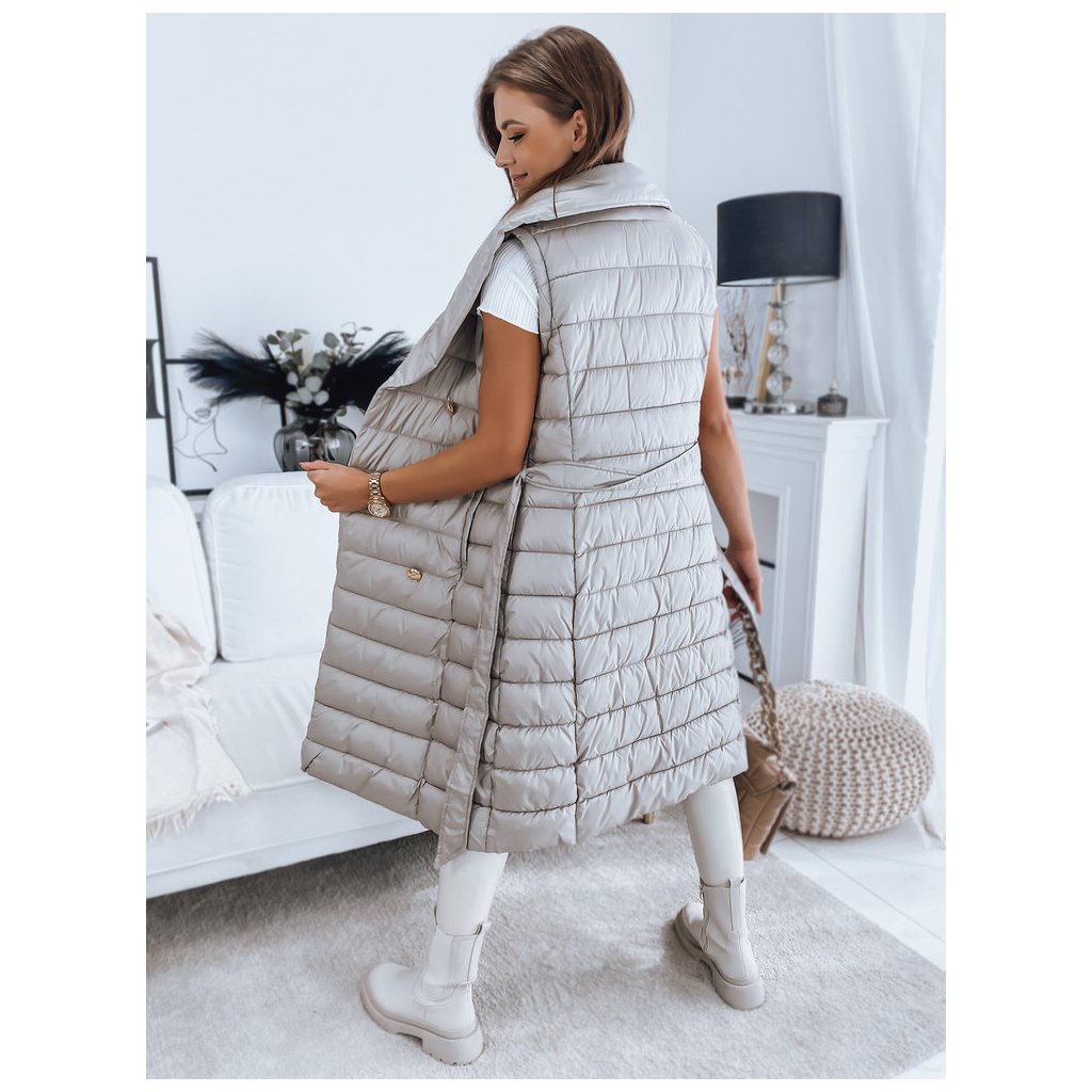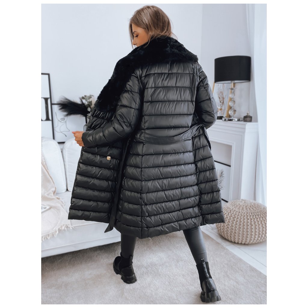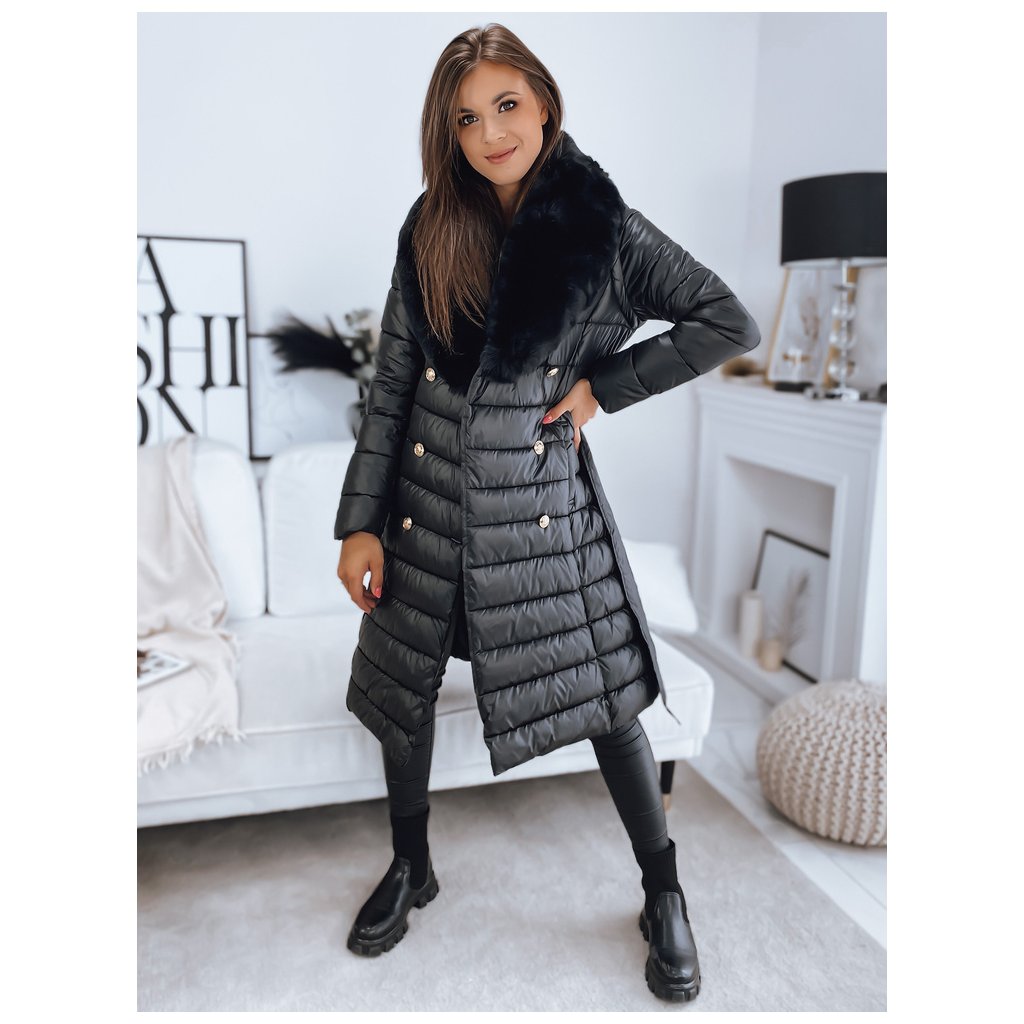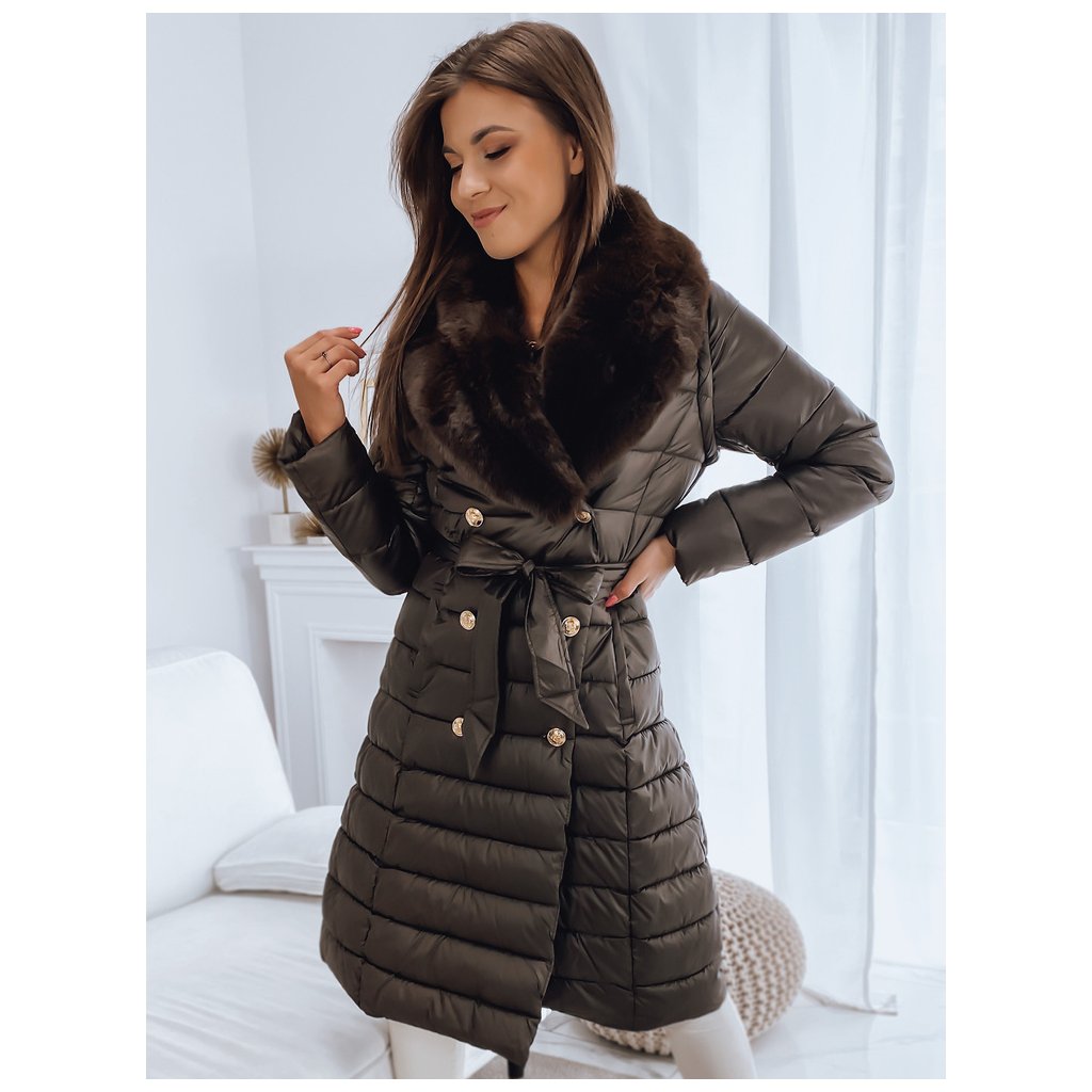 Jedinečný model, který plní stejné funkce kabátu a vesty díky odepínacím rukávům. Kožešina je také odepínací, takže můžeme vytvářet sportovní i elegantní stylizace. Zapínání na ozdobné knoflíky. V pase má zavazování, díky kterému skvěle zdůrazní ženskou postavu. Model je dodáván s páskem stejné barvy.