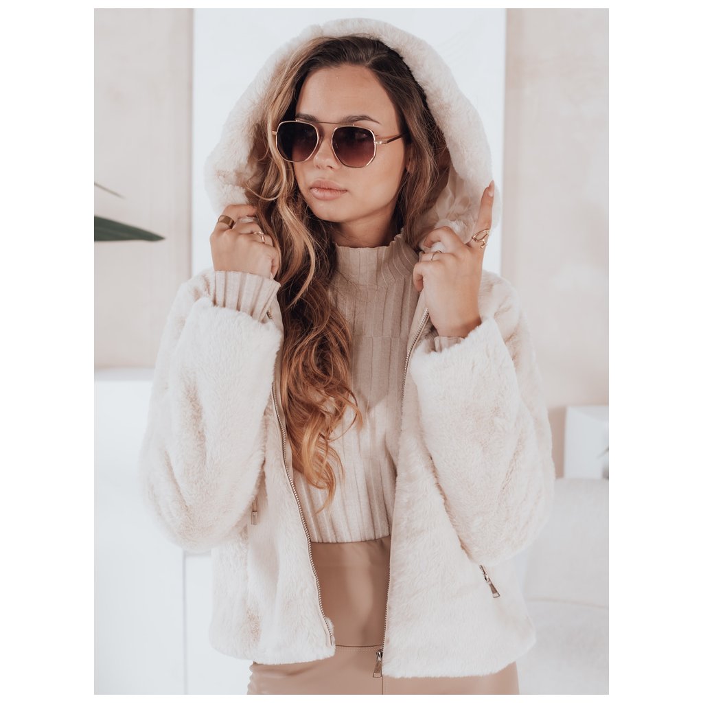 Tento ženský krátký kabát z příjemné umělé kožešiny je perfektní alternativou ke klasické bundě. Má kapuci a zip, což zvyšuje jeho funkčnost. Skvěle se hodí k každodenním outfitům a dodává mu moderní nádech. Perfektní volba pro podzimní/zimní sezónu.