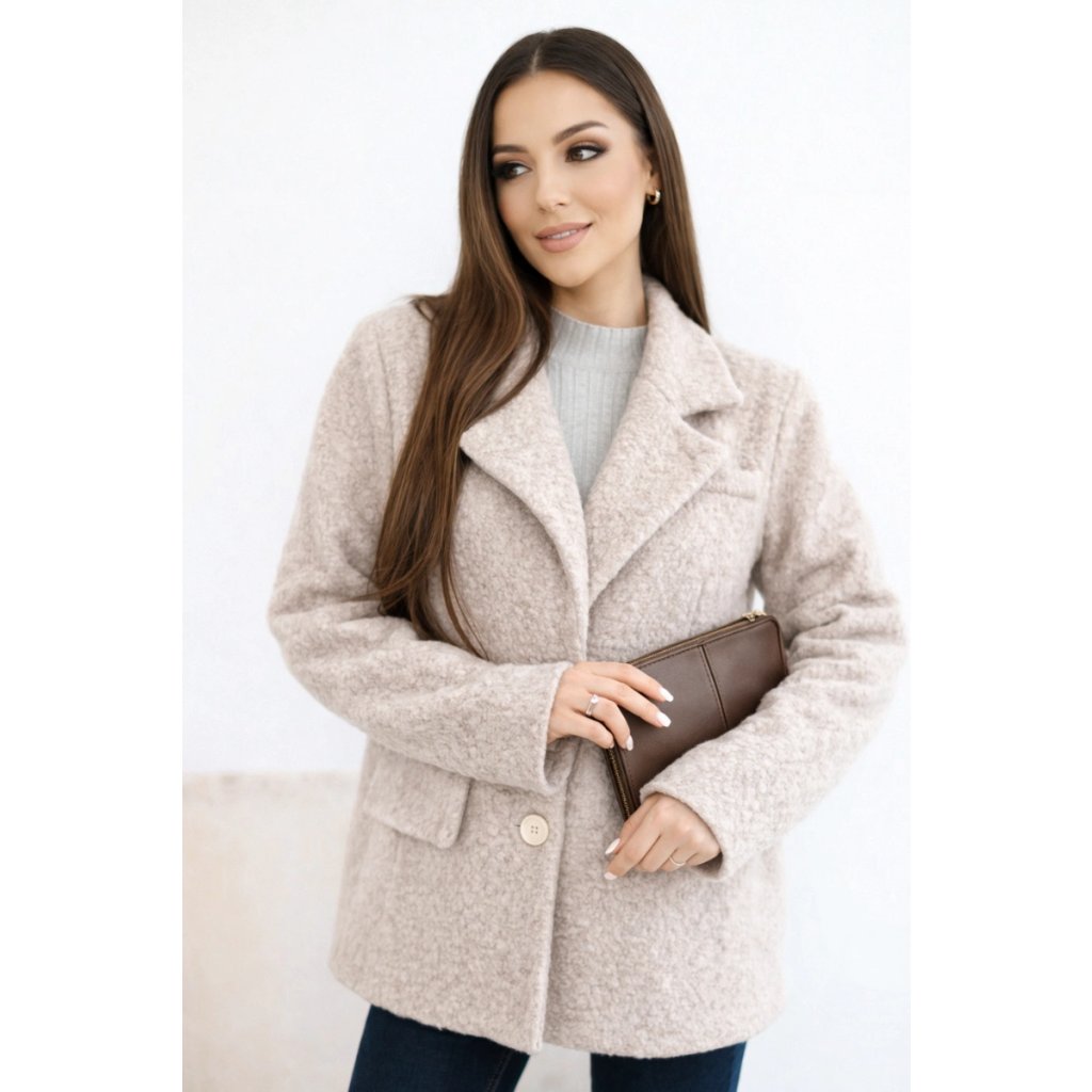 Stylová a teplá dámská bunda z měkkého "ovčího" materiálu je vynikající volbou pro chladnější dny. Italská výroba zaručuje důraz na detail a klasický střih s límečkem a dvouřadým zapínáním dodává celku elegantní charakter. Bunda má praktické kapsy s ozdobnými detaily a zlatými knoflíky, které zdůrazňují jedinečný styl tohoto modelu. Model se perfektně hodí jak na každodenní nošení, tak i na elegantnější outfity – dobře se hodí ke kalhotám, šatům nebo sukním. Měkký a příjemný materiál na dotek zajišťuje pohodlí při nošení a účinnou ochranu před chladem.