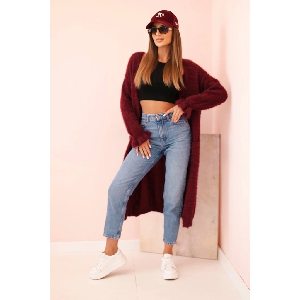 Stylový dámský kardigan z mohairu, ideální na chladnější dny. Vyrobený z kombinace mohairu, vlny a akrylu, zajišťuje vynikající termální vlastnosti, a zároveň lehkost a měkkost na dotek. Model s dlouhým rukávem, otevřeným předním dílem a praktickými kapsami. Dlouhý střih opticky zeštíhluje postavu a skvěle se hodí jak k kalhotám, tak k šatům.