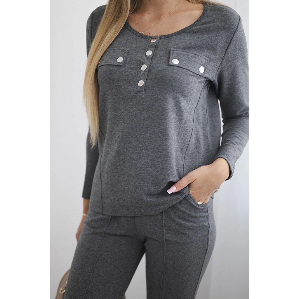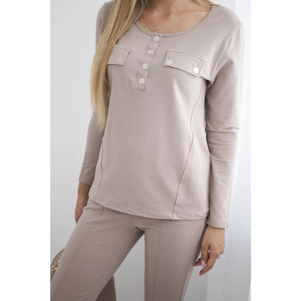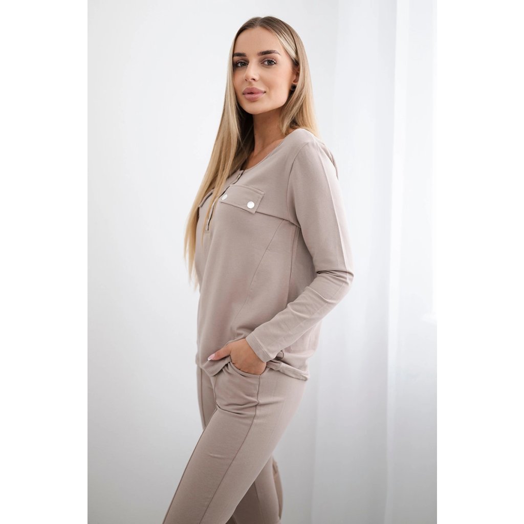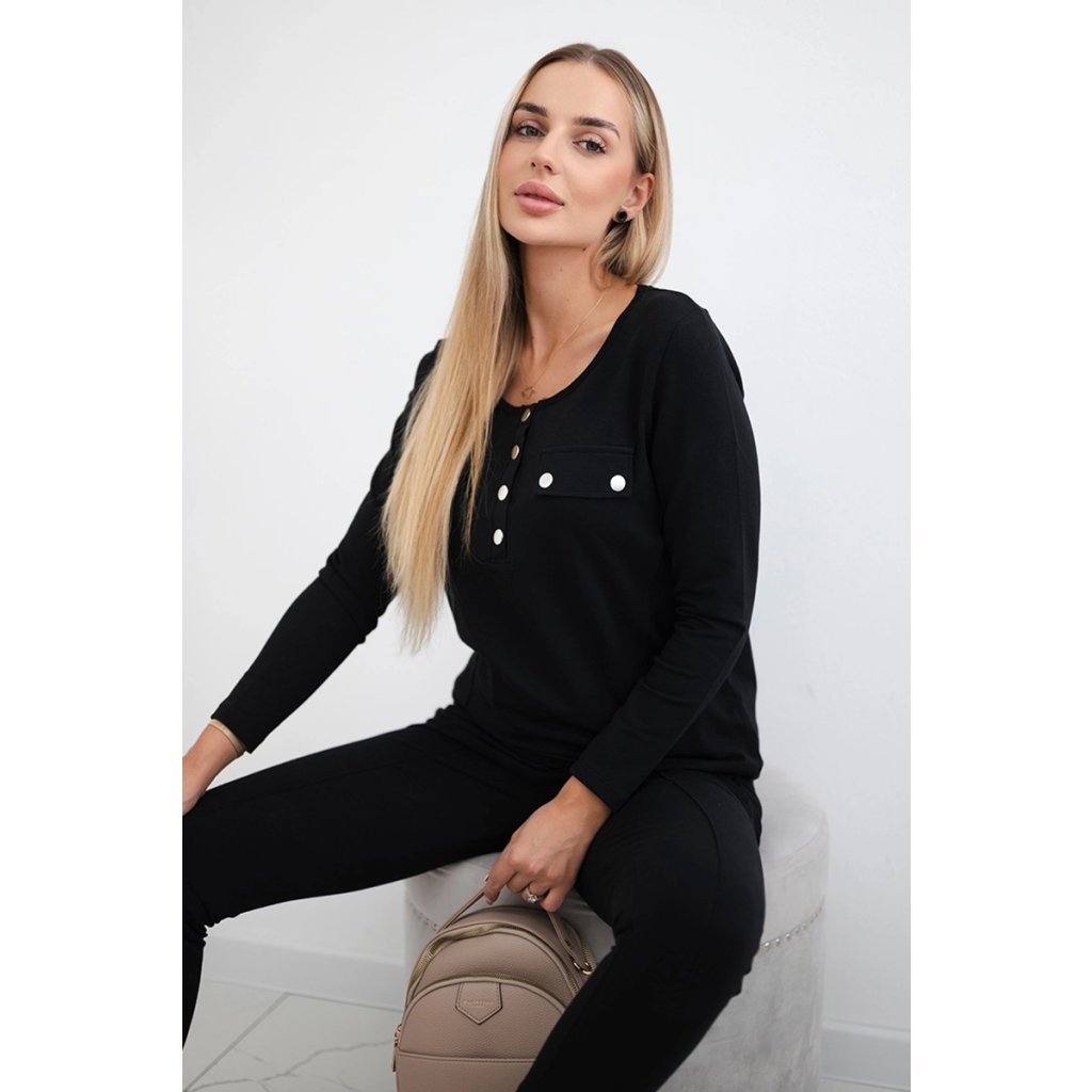 Představujeme vám sadu trička s dlouhým rukávem a kalhot. Tričko má zapínání ve výstřihu na patentky. Kalhoty s kapsami a zavazováním v pase. Sada je vyrobena z vysoce kvalitního materiálu.