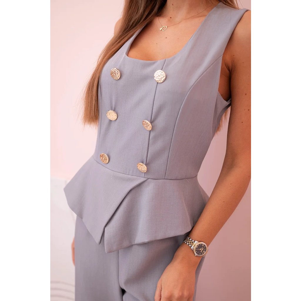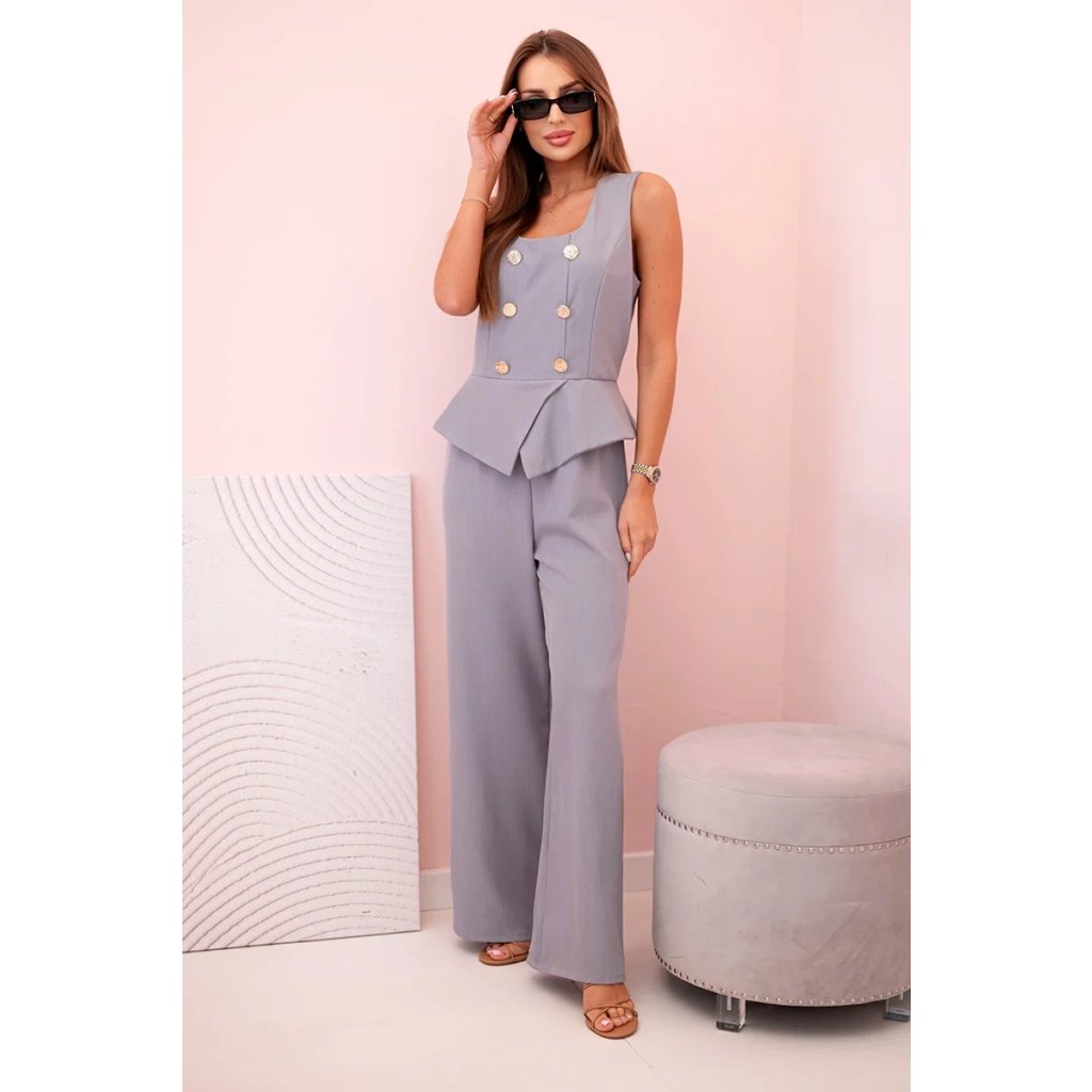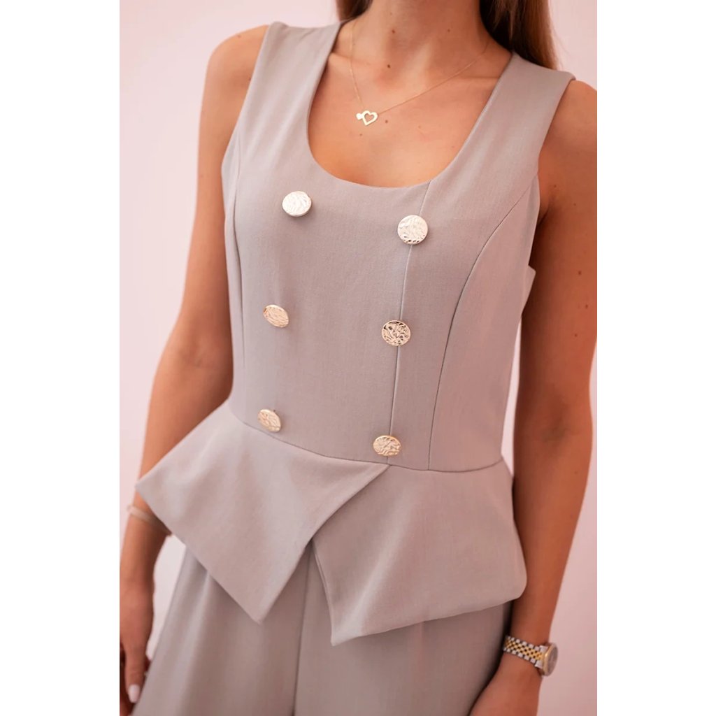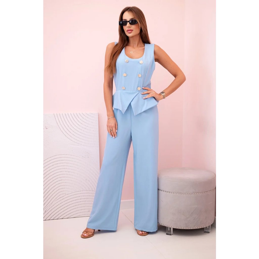 Dámský komplet bez rukávů s širokými nohavicemi a ozdobnými knoflíky - výprodej