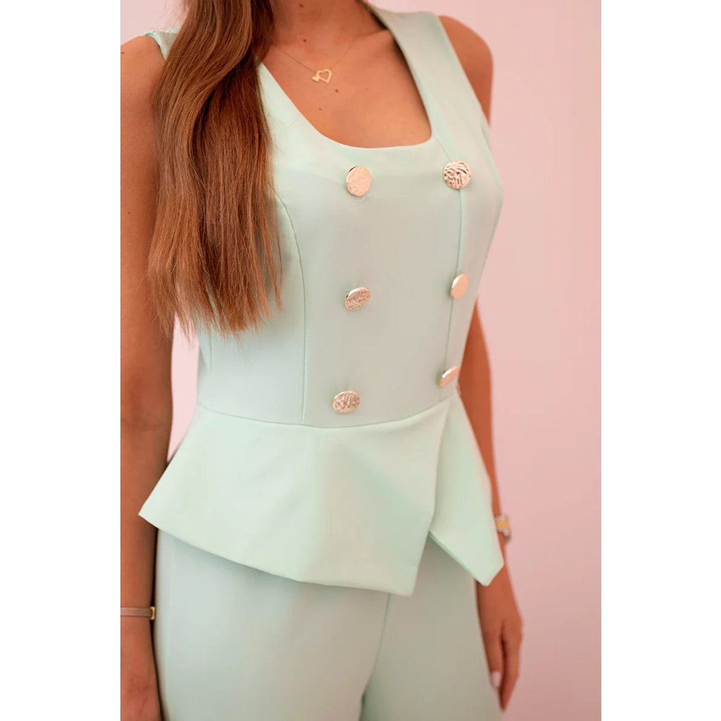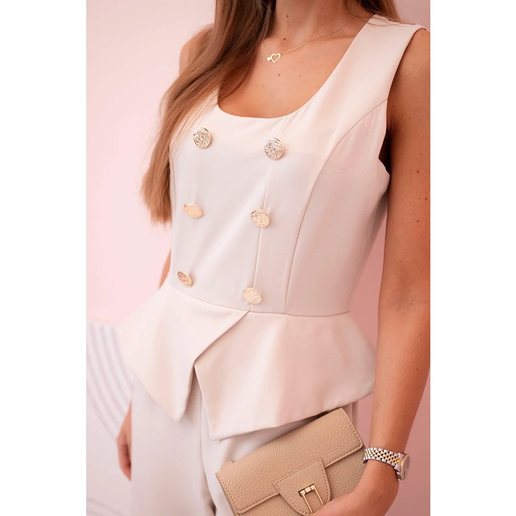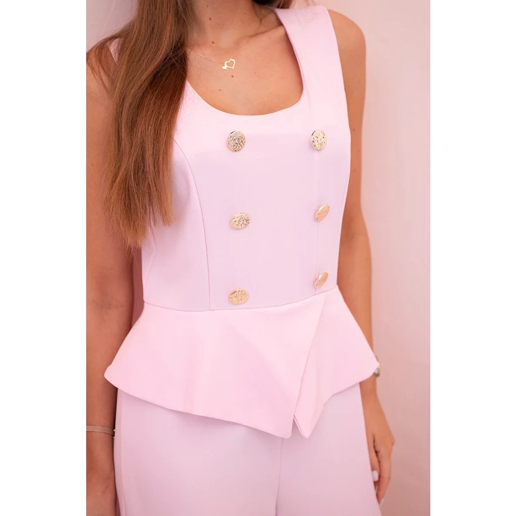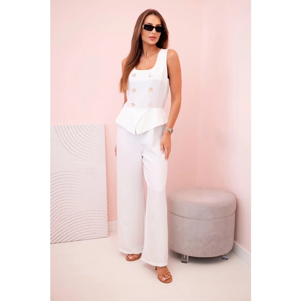 Dámský komplet bez rukávů s širokými nohavicemi a ozdobnými knoflíky - výprodej