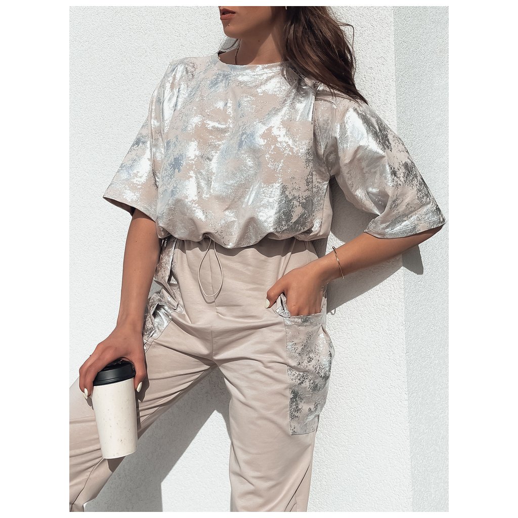Objevte sadu BIRWEKI, synonymum ležérnosti a sofistikovaného stylu. Toto útulné tričko s kulatým výstřihem a krátkým rukávem je perfektním základem pro mnoho outfitů, zatímco unikátní batikovaný motiv zdůrazňuje vaši individualitu. Kalhoty s pohodlným elastickým pasem zajišťují celodenní pohodlí a dvě praktické kapsy dodávají funkčnost. Vyberte si tuto sadu, abyste vynikli a cítili se každý den výjimečně.