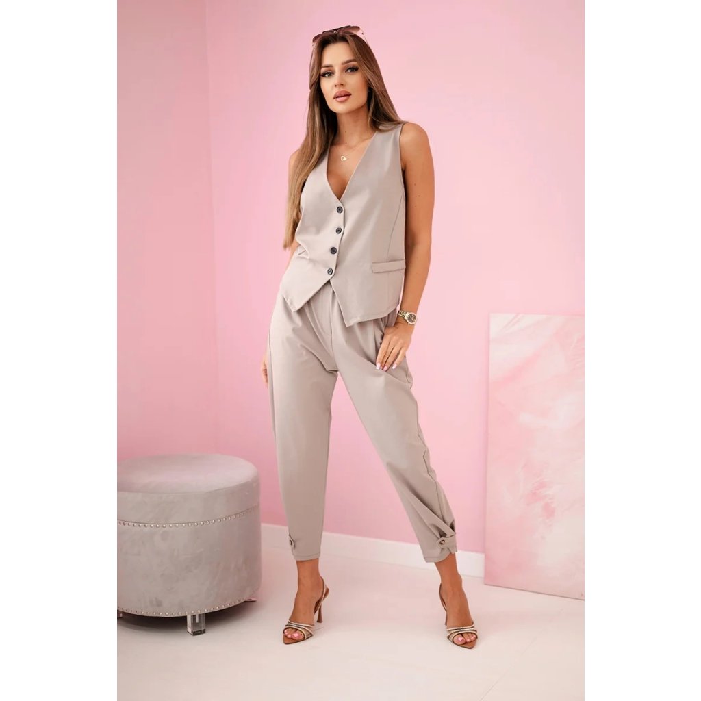 Tato jedinečná souprava spojuje klasickou eleganci s módním minimalismem a vytváří tak dokonalý outfit pro každou příležitost. Vesta s precizním střihem jemně zvýrazňuje siluetu a dodává outfitu sofistikovaný vzhled, zatímco její univerzální design umožňuje nosit ji samostatně nebo v kombinaci s košilí či halenkou. Kalhoty doplňují soupravu a zajišťují pohodlné nošení a dokonalé přizpůsobení postavě. Díky pečlivému zpracování a kvalitním materiálům poskytuje tato souprava celodenní komfort a hodí se jak pro každodenní outfity, tak i pro elegantnější příležitosti. Vyberte si soupravu vesta + kalhoty a vytvořte stylový, moderní vzhled, který podtrhne vaši sebejistotu a vkus.