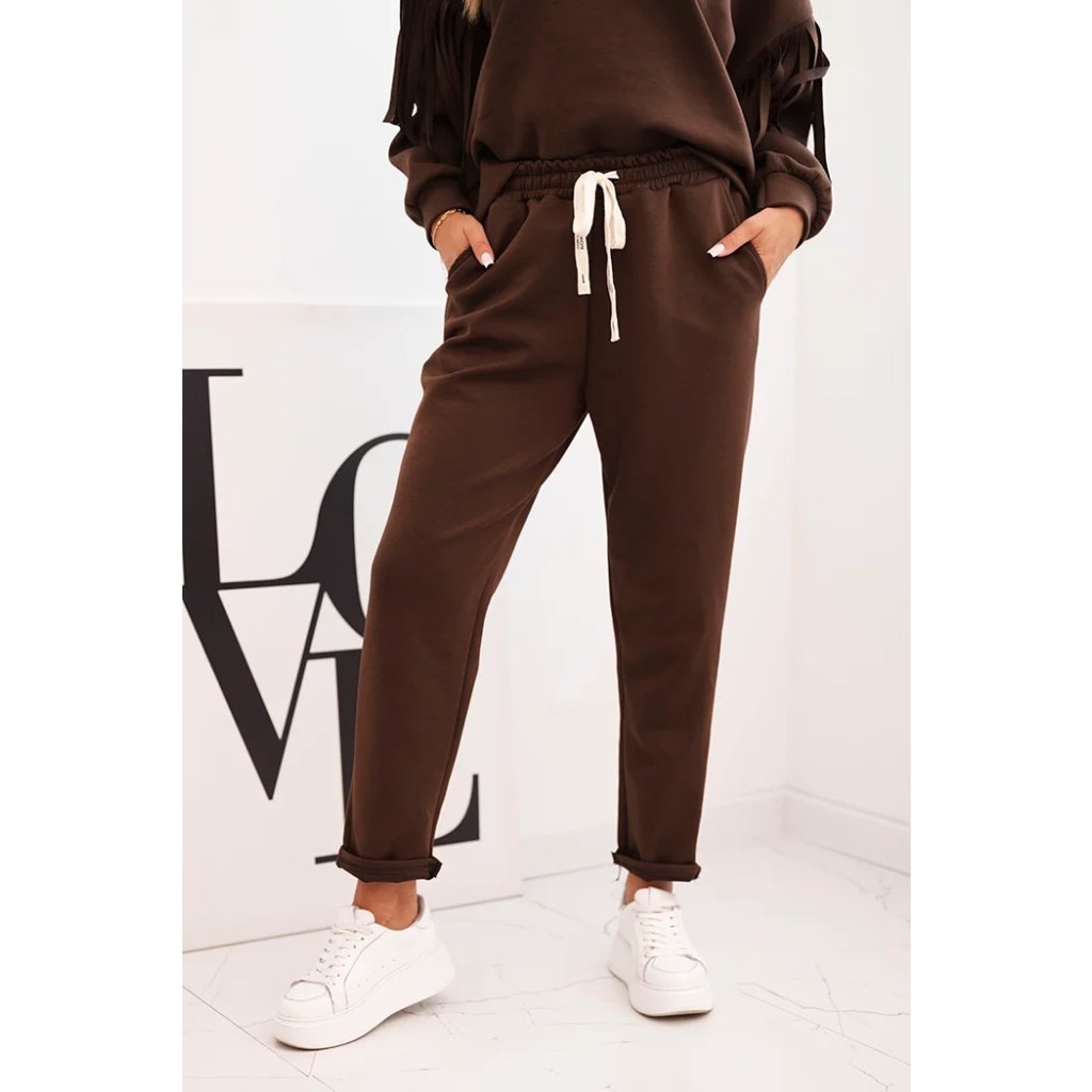 Dámský komplet máslový s třásněmi na rukávech hnědý Regína