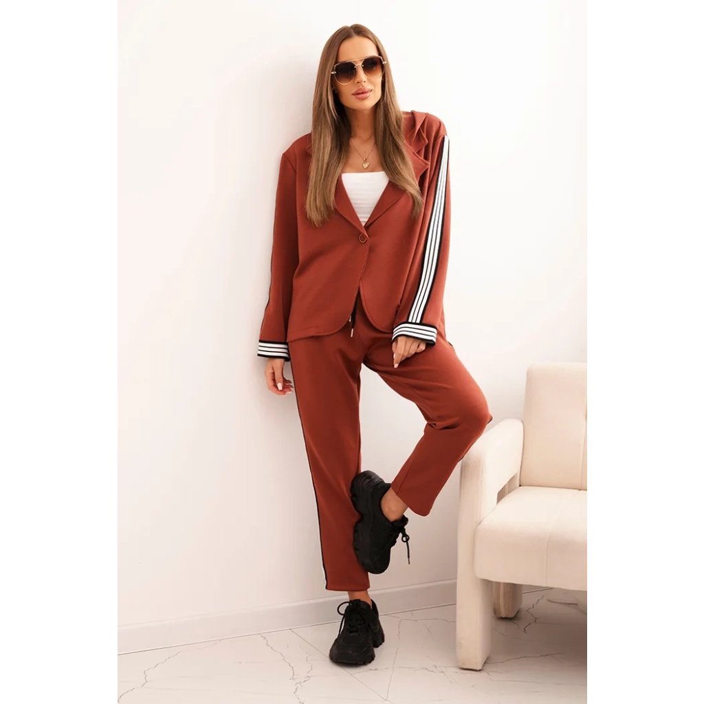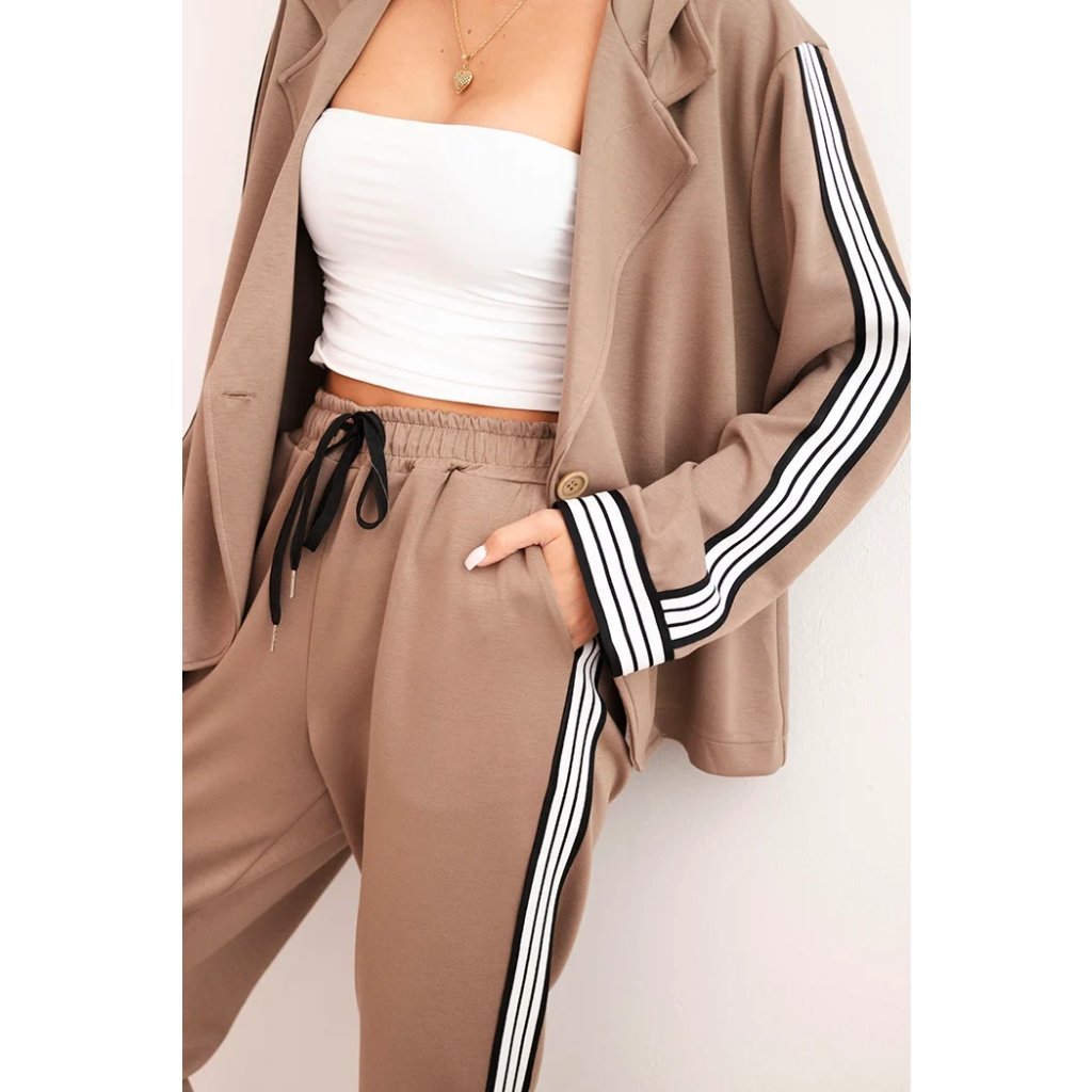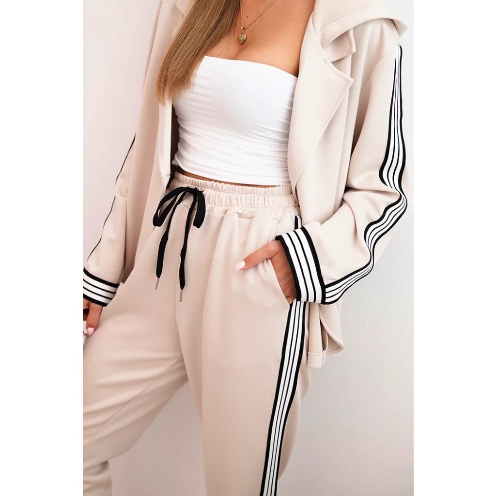 Dámský komplet s viskózou, s lampasem a sportovním sako khaki