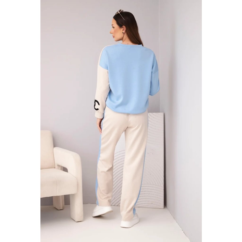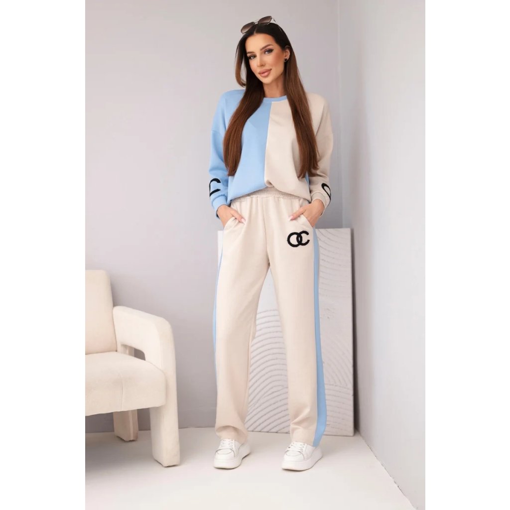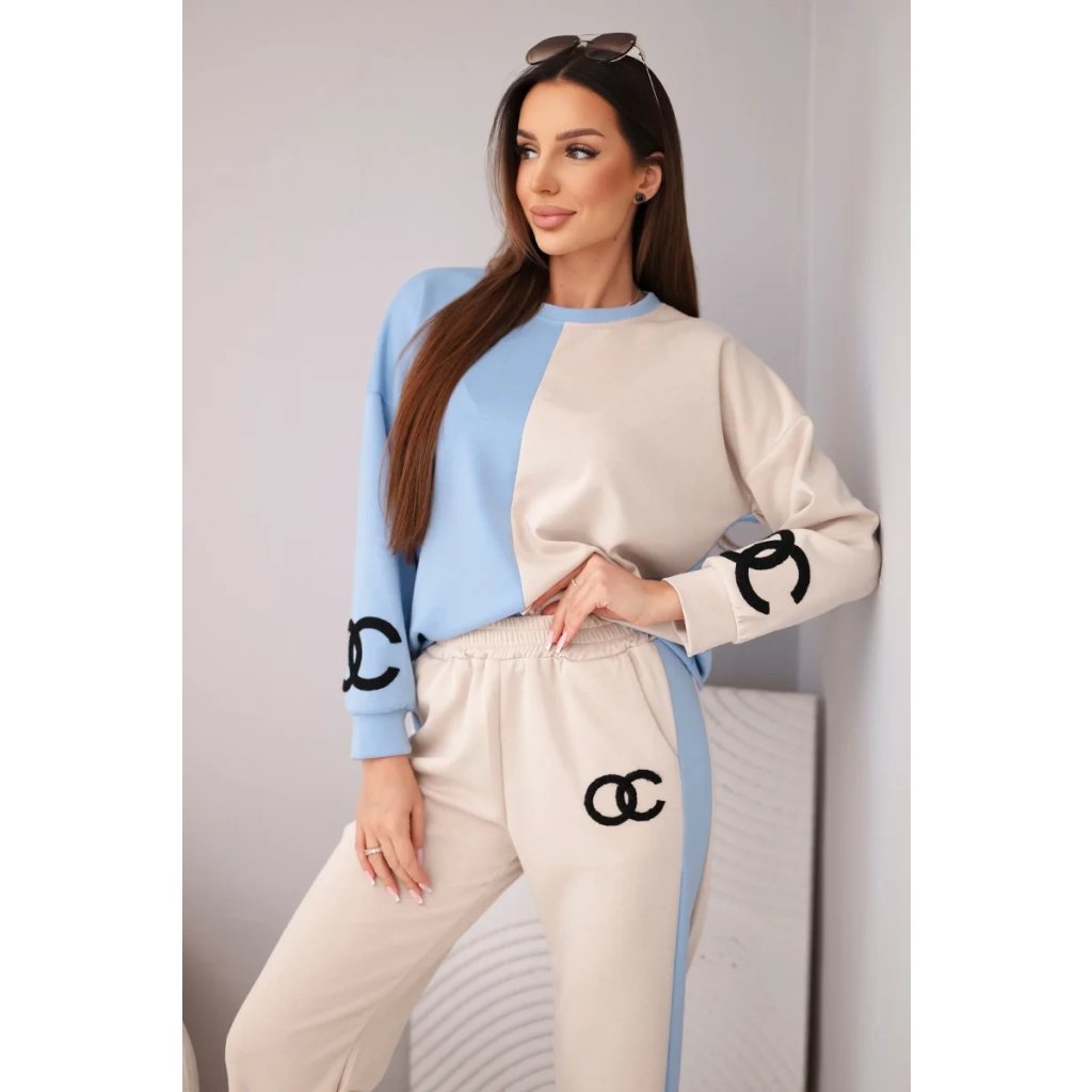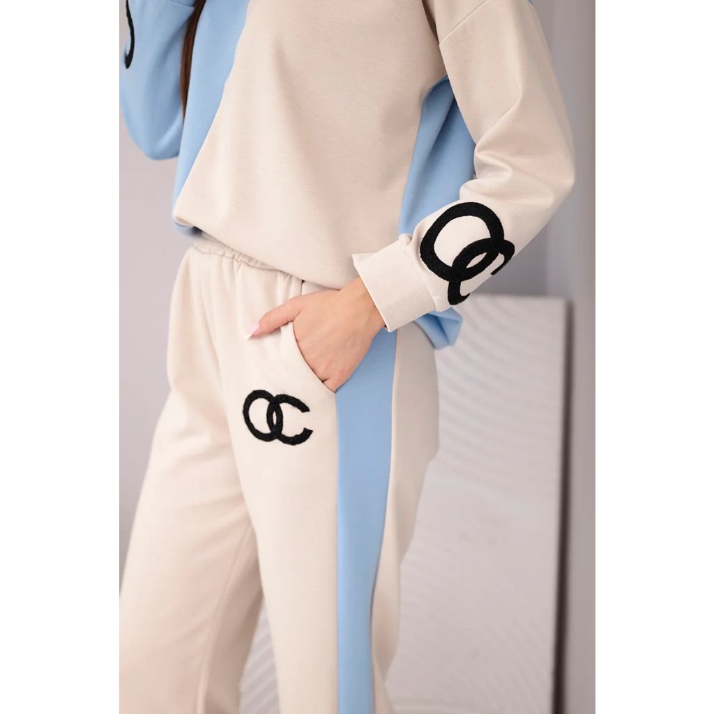 Dopřejte si pohodlí a styl s touto měkkou dámskou teplákovou soupravou! Tato unikátní souprava okouzlí netradiční kombinací pastelových barev – béžové a modré – a vytvoří svěží, ženský vzhled, ideální pro každodenní nošení. Volná oversized mikina a rovné kalhoty s elastickým pasem nabízejí maximální pohodlí při nošení. Výšivka na přední straně dodává sportovní eleganci a jedinečný akcent.