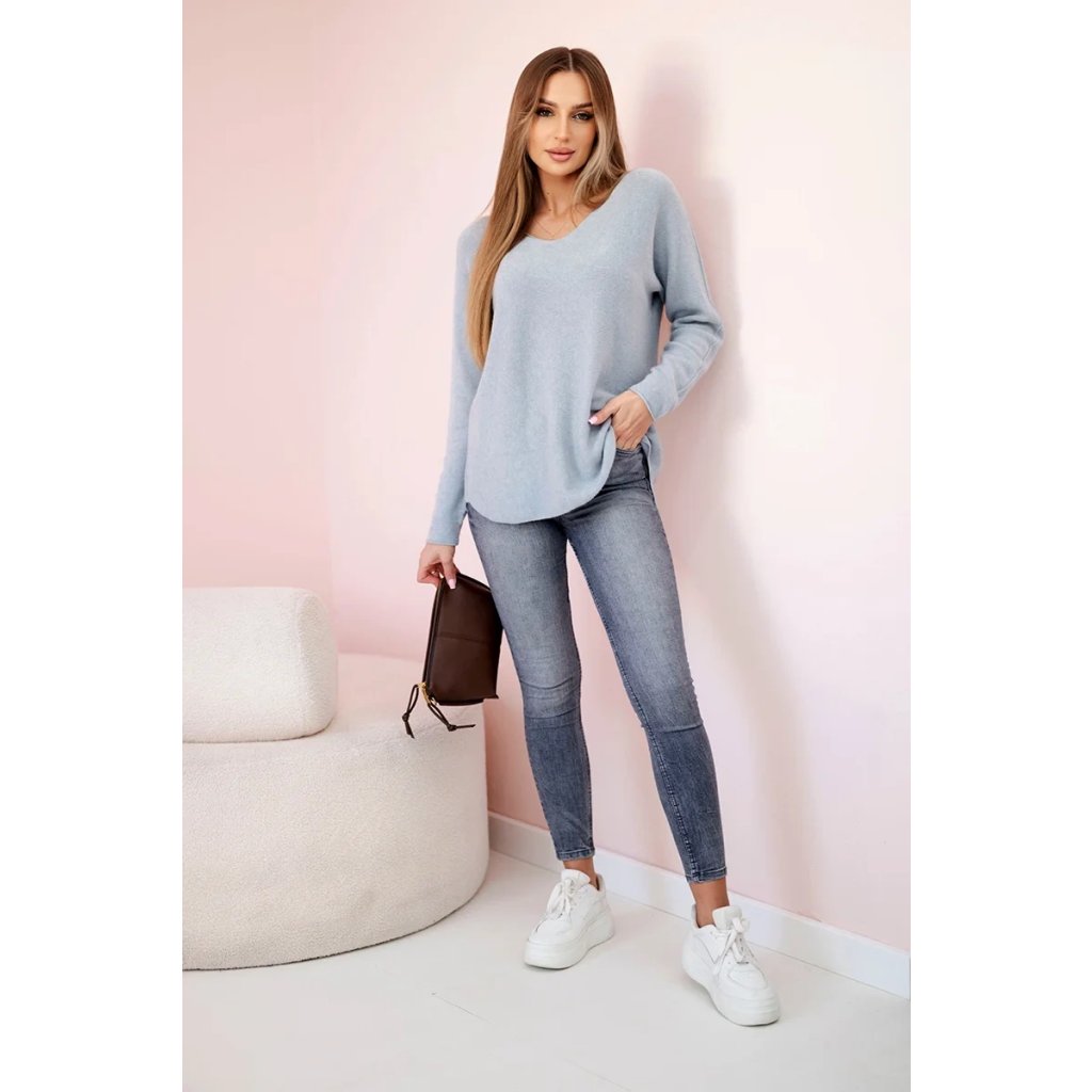 Svetr s výstřihem do V je klasický a všestranný kus oblečení, který bude perfektně fungovat v mnoha stylech. Vyrobeno z měkkého materiálu příjemného na dotek, poskytuje teplo a pohodlí. Výstřih ve tvaru V decentně zvýrazňuje krk a dodává svetru eleganci a lehkost. Perfektní jak pro každodenní použití, tak pro formálnější příležitosti, perfektně se hodí k džínám, sukni nebo elegantním kalhotám a vytváří stylové a rafinované outfity.