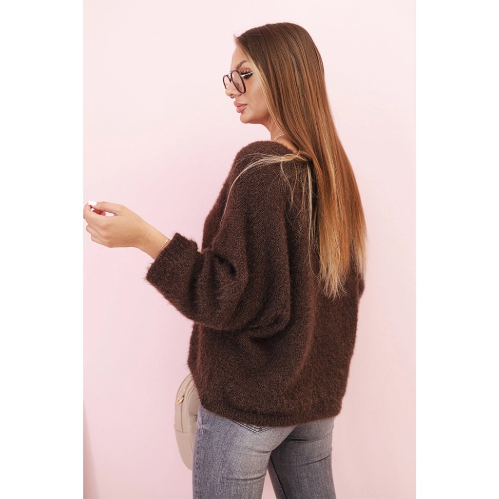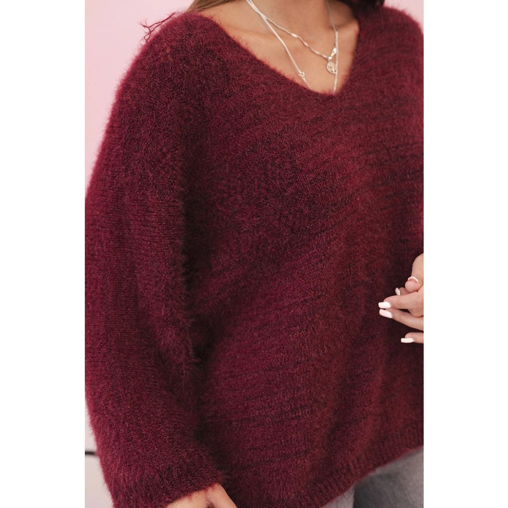 Dámský svetr IT92 z mohairu volného střihu s výstřihem do V