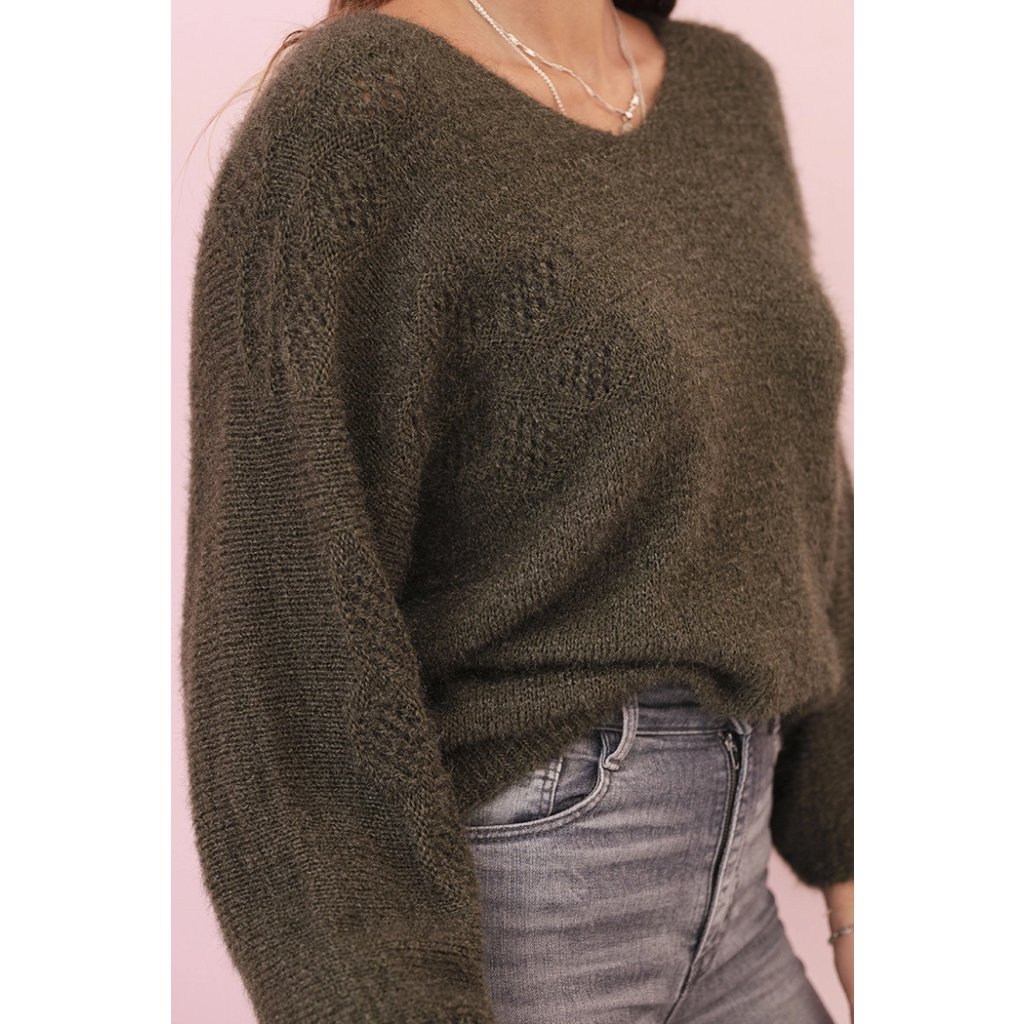 Dámský svetr IT92 z mohairu volného střihu s výstřihem do V