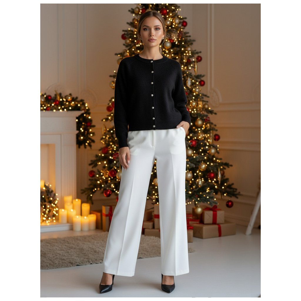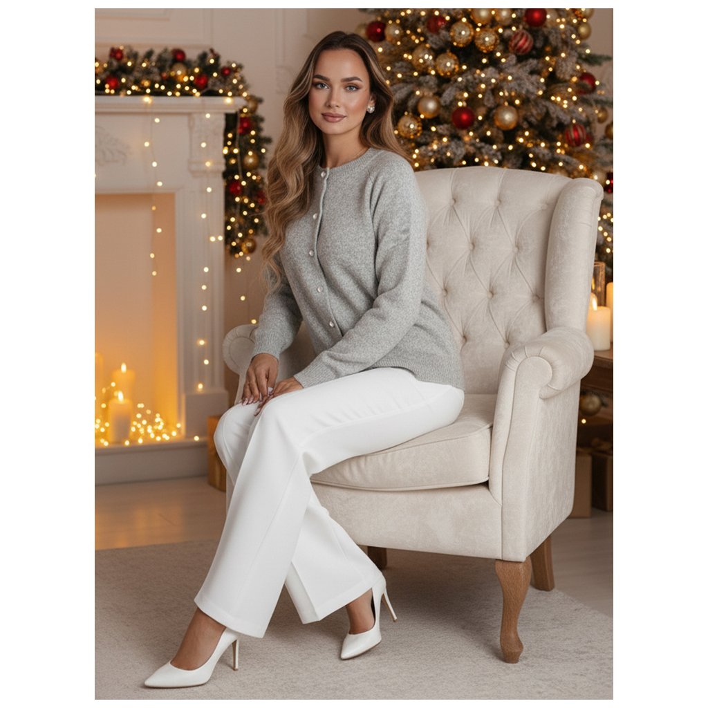 Svetr SELINA je decentní směsí jednoduchosti a elegance. Jeho jemně zaoblený výstřih a perleťové knoflíky vytvářejí nadčasový styl, který se snadno hodí do vašeho každodenního šatníku. Materiál s vysokým obsahem vlny zajišťuje celodenní pohodlí.