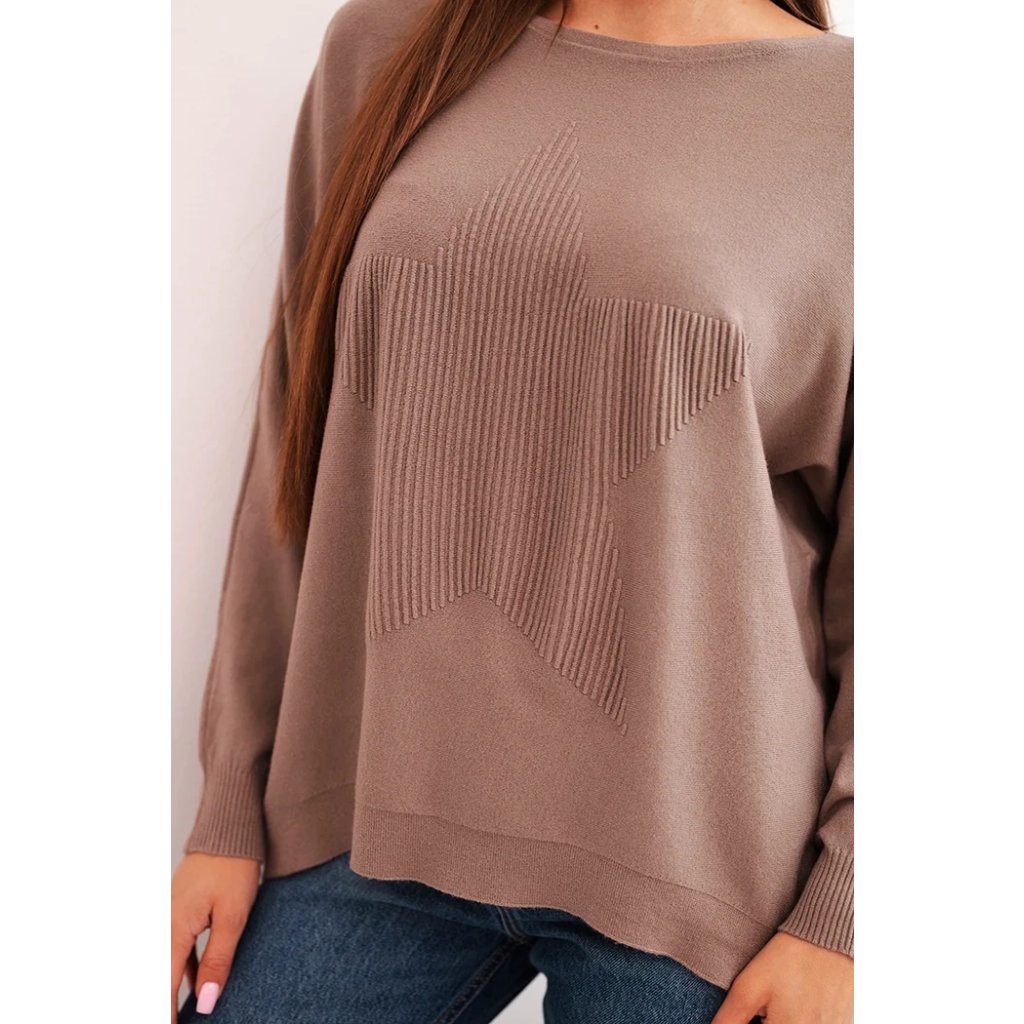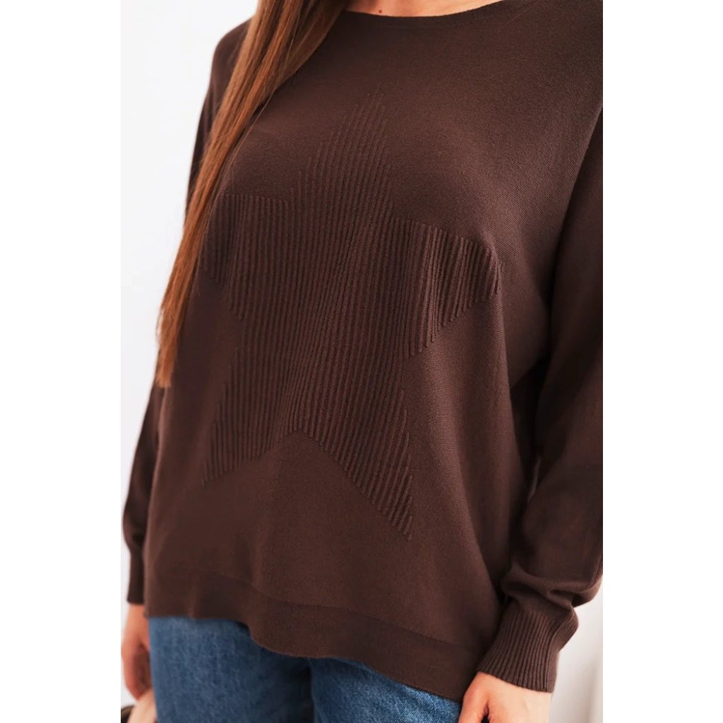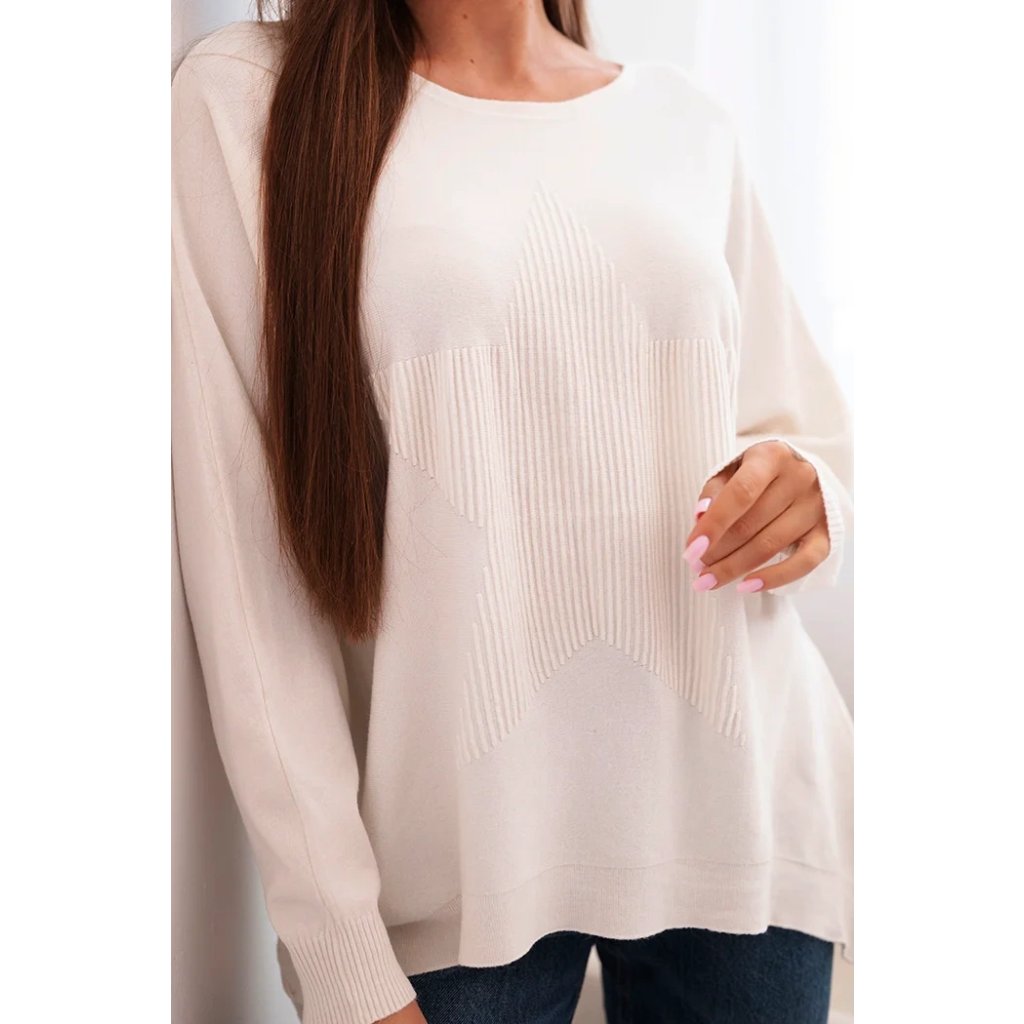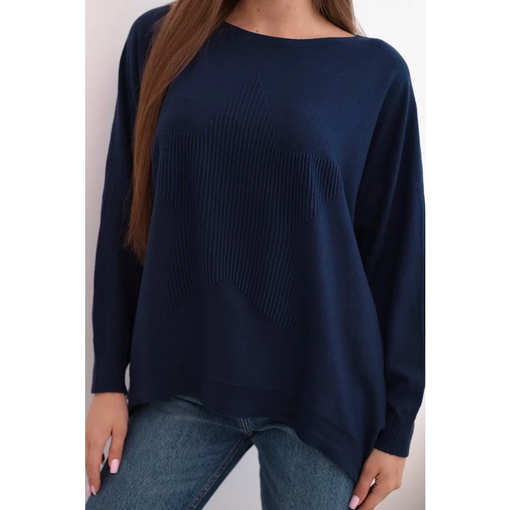 Stylový a pohodlný? Tento dámský svetr s raženou hvězdou spojuje módní design a každodenní komfort nošení. Volný střih s delším zadním dílem skvěle vypadá na postavě a zajišťuje volnost pohybu. Ražená hvězda vpředu mu dodává jedinečný charakter, díky čemuž přitahuje pozornost a vyčnívá na pozadí klasických modelů.