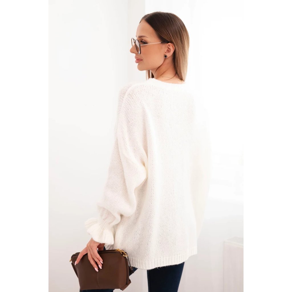 Tento dámský svetr je ideální kombinací stylu a pohodlí – volný střih a módní, uvolněný design z něj činí nezbytný kousek ve vaší podzimní a zimní garderobě. Vyroben z měkkých a teplých vláken, svetr zaručuje pohodlné nošení po celý den. Nařasené rukávy zakončené manžetami mu dodávají šarm a moderní charakter.