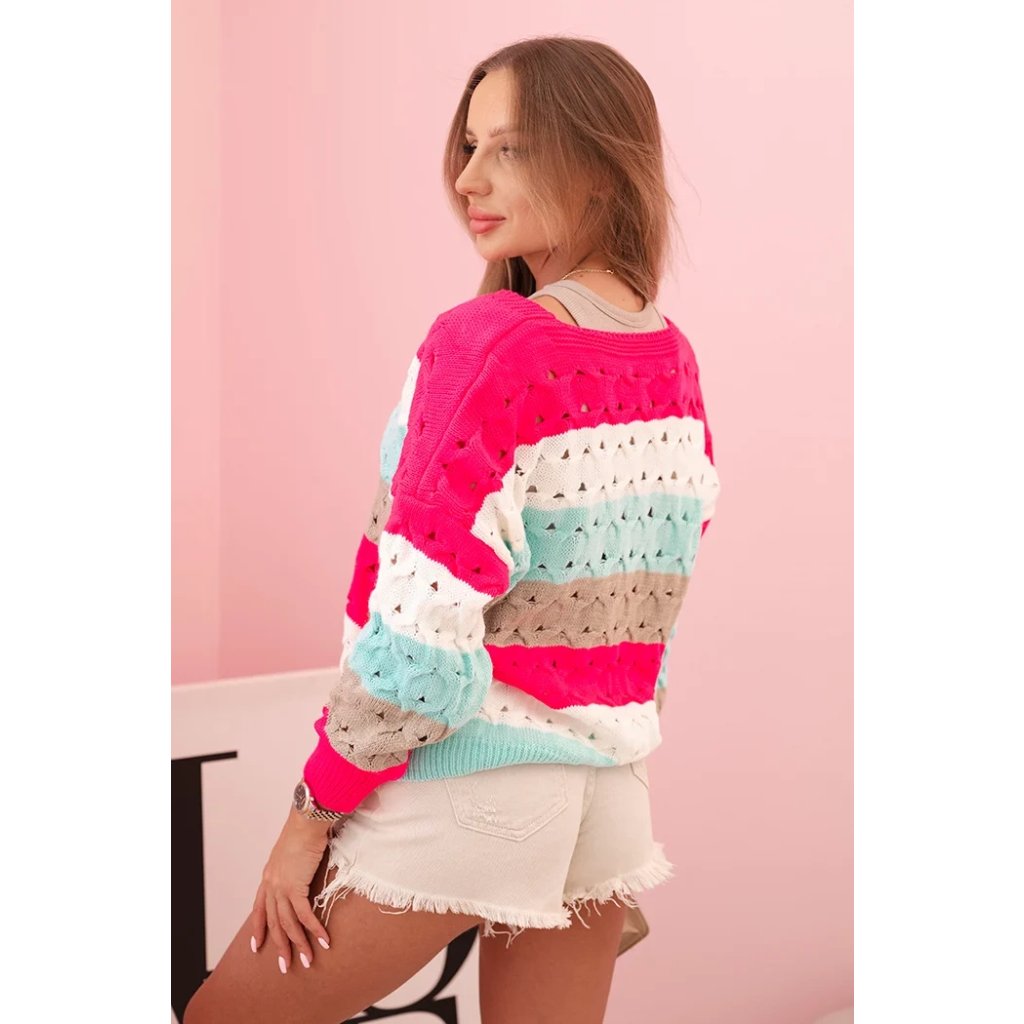 Dámský svetr s průhledným vzorem a pruhy s výstřihem do V