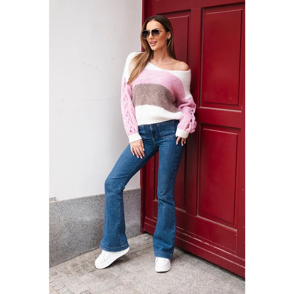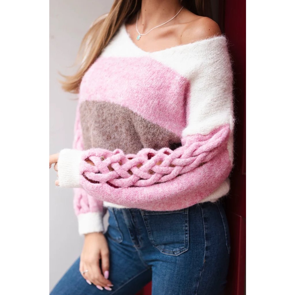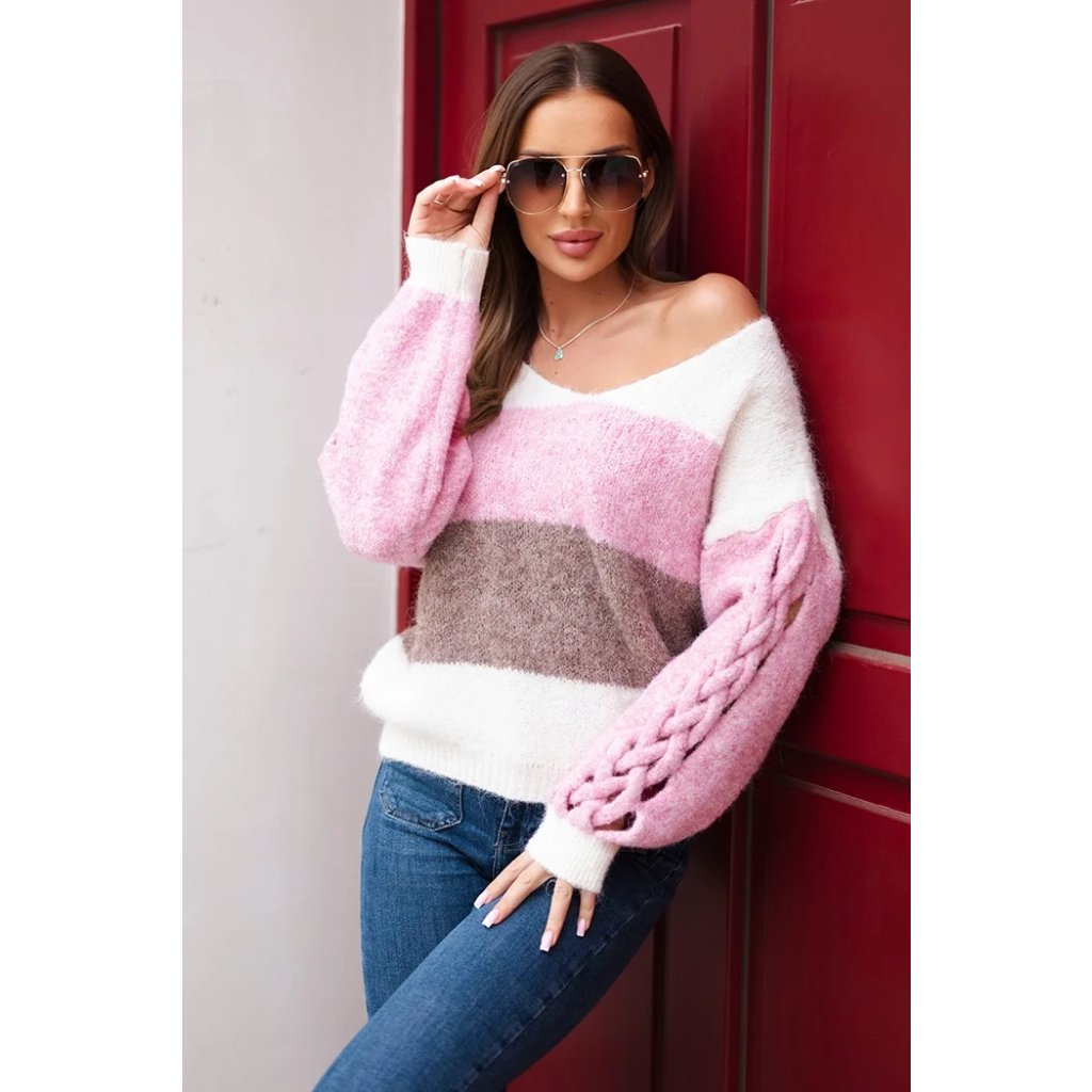Dámský svetr s pruhy a copánky na rukávech
