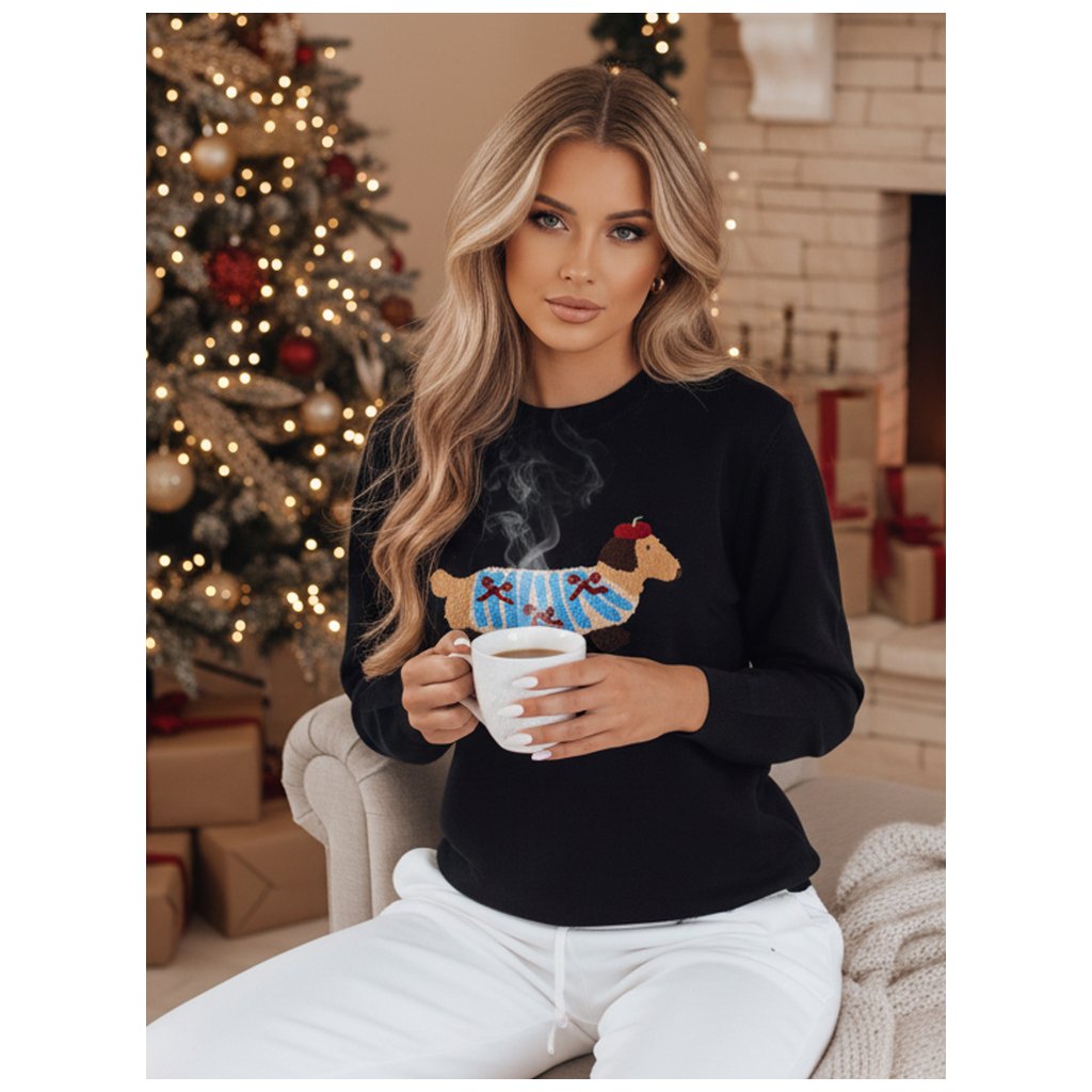 Dámský černý svetr CHICPAWS s aplikací psa