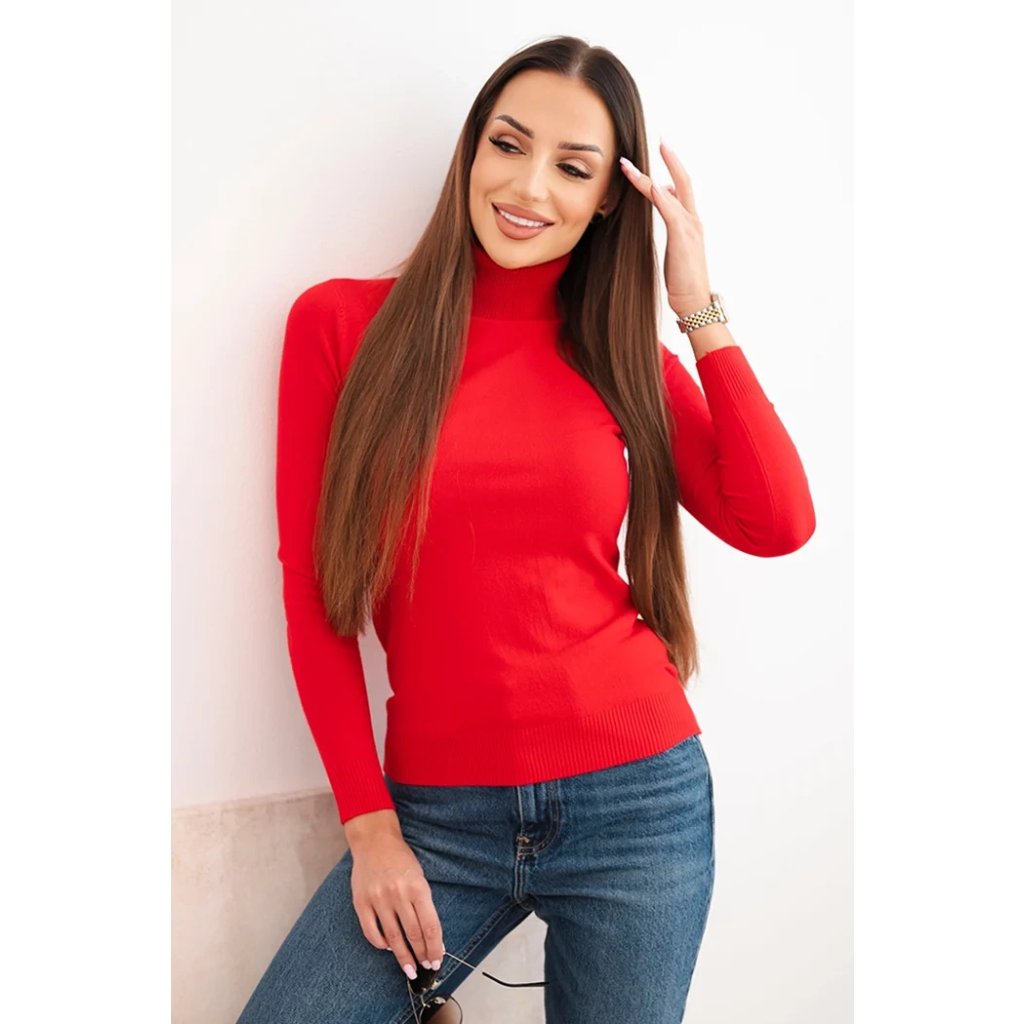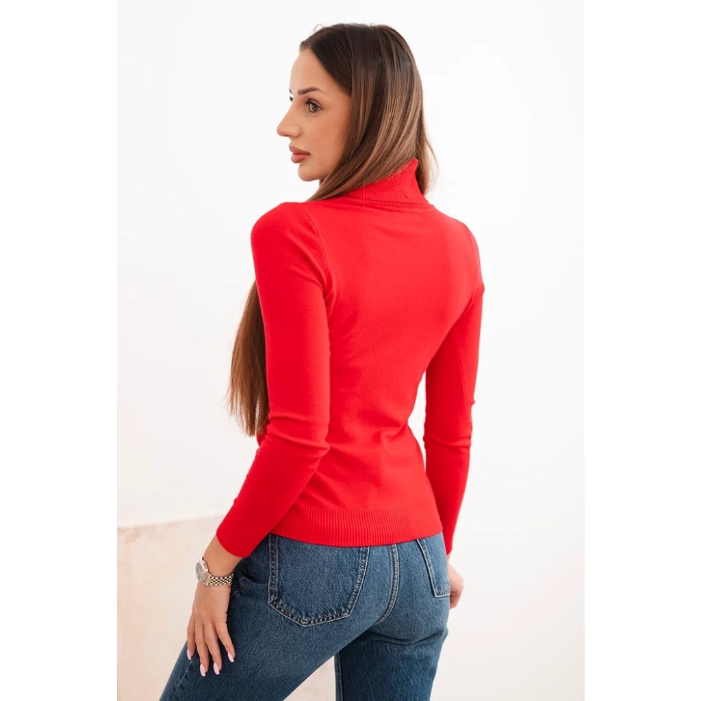 Dámský svetr z viskózy s rolákem a dlouhým rukávem červený