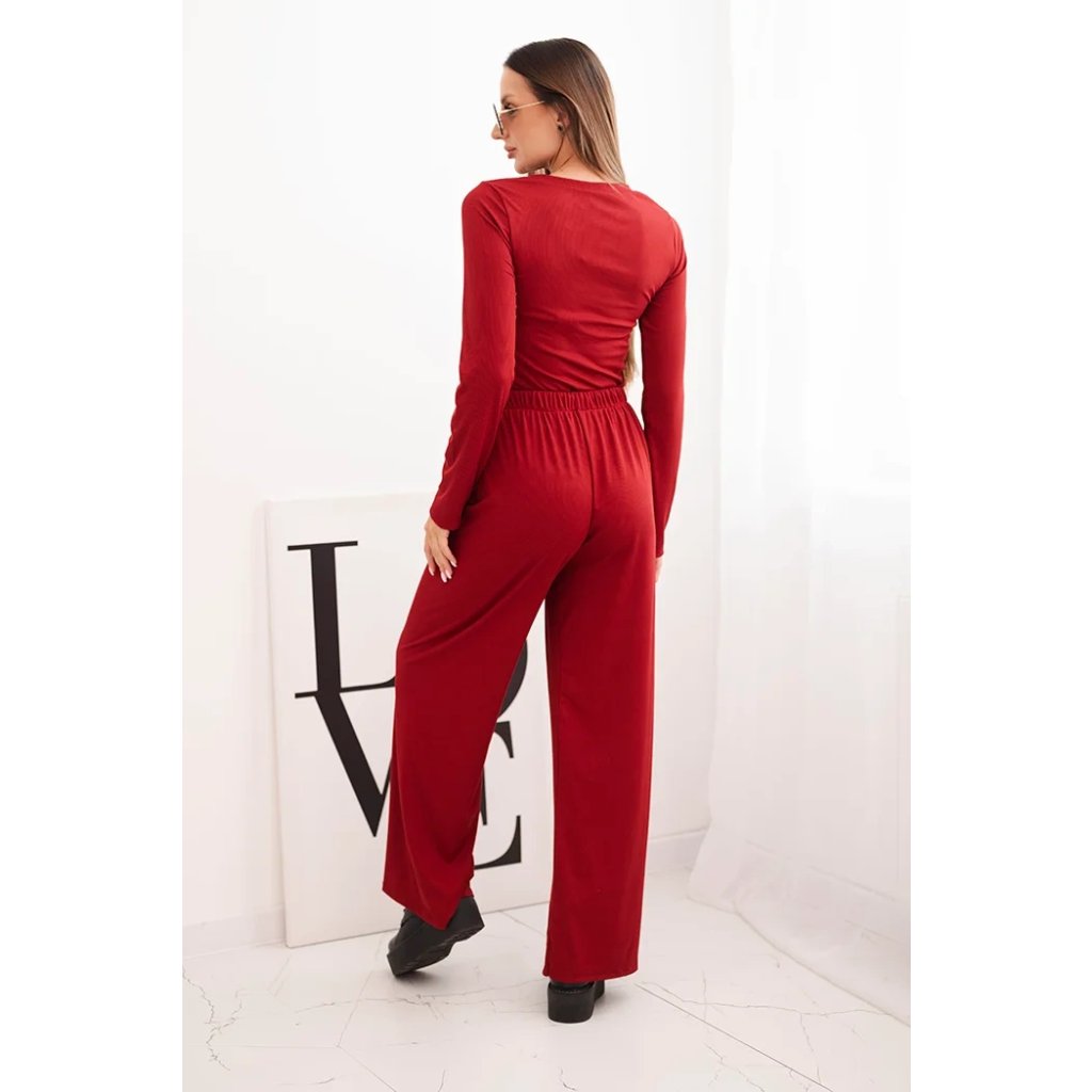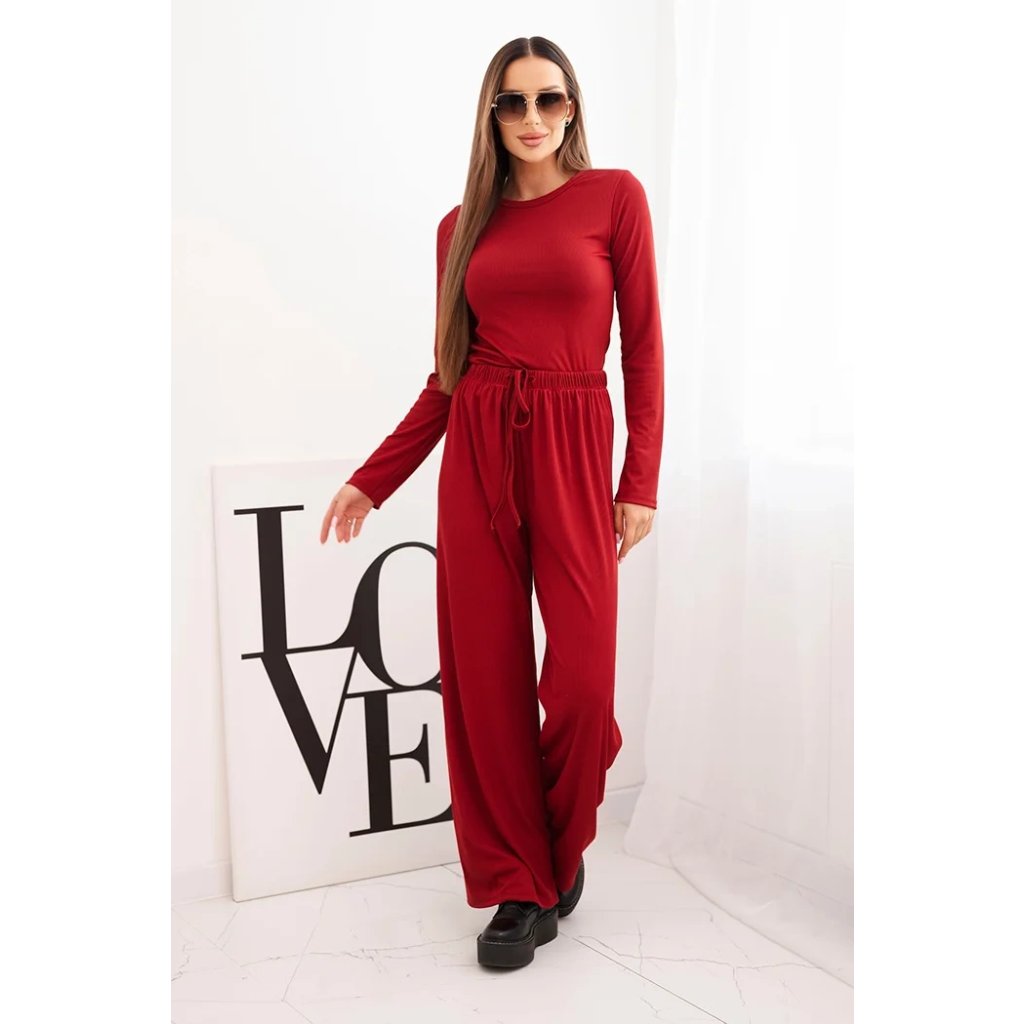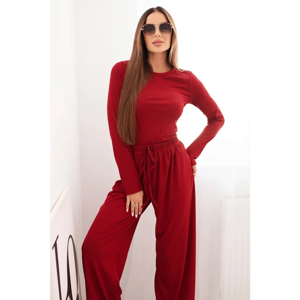 Hledáte pohodlnou a stylovou soupravu na každý den? Tento dámský komplet s dlouhým rukávem a širokými kalhotami je ideální volbou pro ženy, které si cení komfortu a módního vzhledu. Vyrobeno z měkké viskózy s přídavkem elastanu, skvěle se přizpůsobí postavě, aniž by omezovalo pohyb. Halenka jednoduchého střihu s dlouhým rukávem se dokonale hodí k širokým kalhotám s elastickým pasem na gumu. Je to skvělá volba jak na relaxaci doma, tak na volné vycházky do města. Souprava odpovídá aktuálním trendům módního stylu – je minimalistická, a přitom velmi ženská. Takový komplet by měl mít každý ve své skříni!