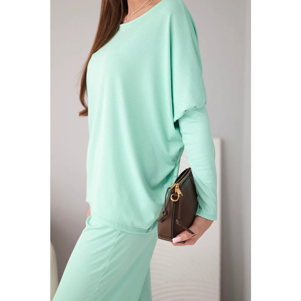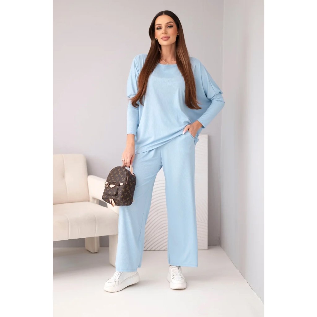 Dvoudílný set: volná halenka + kalhoty s širokými nohavicemi