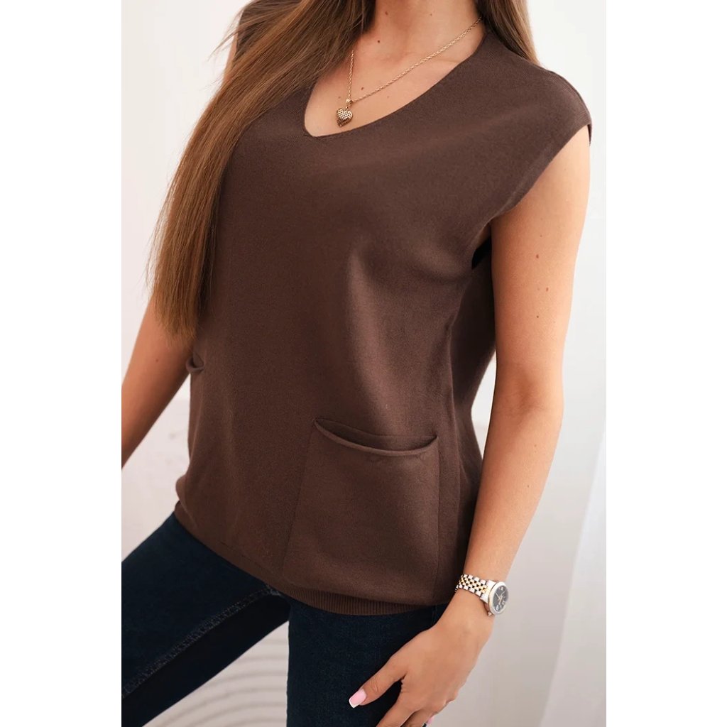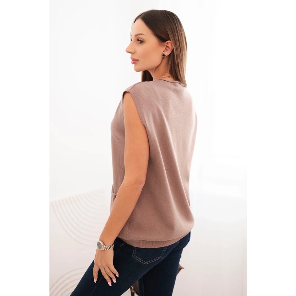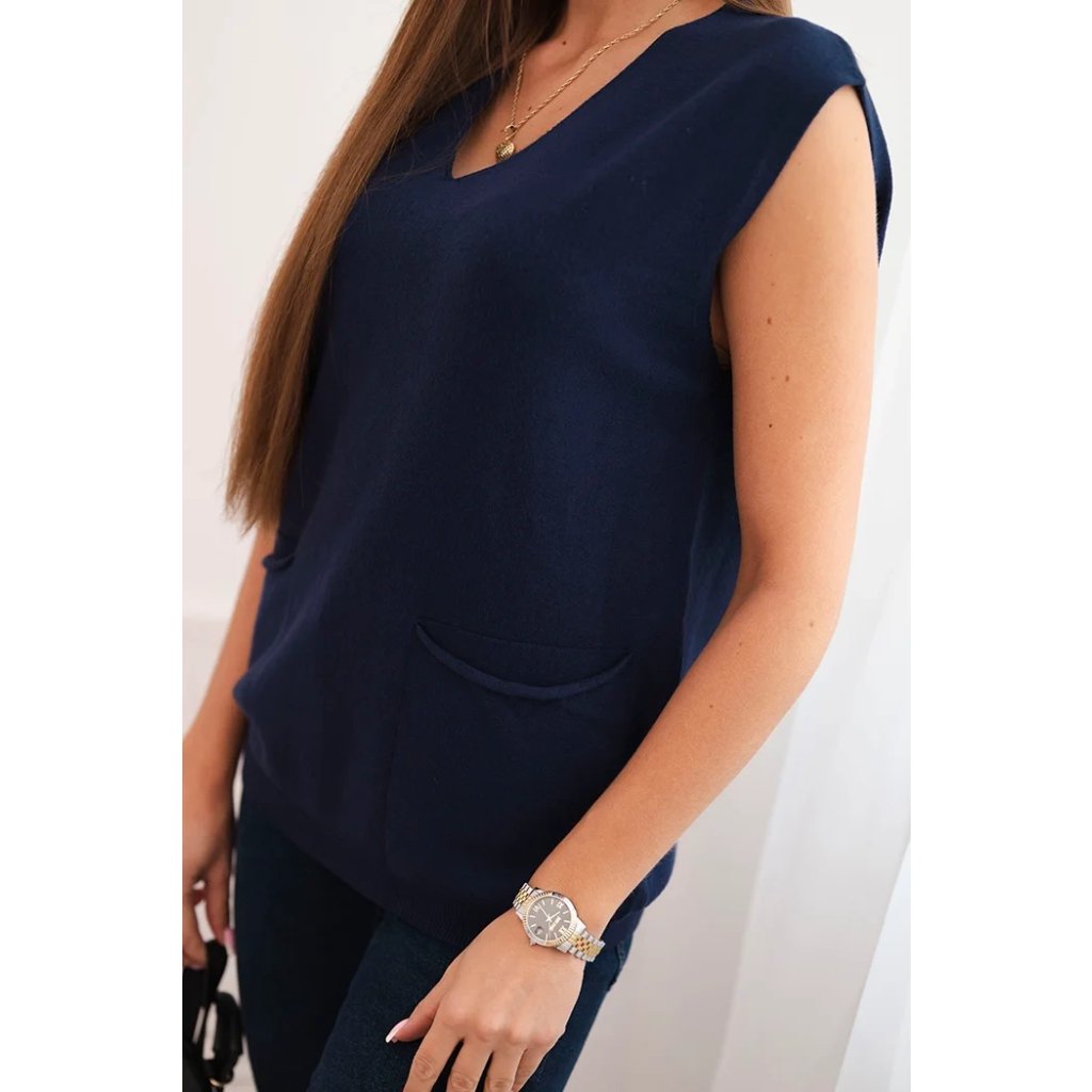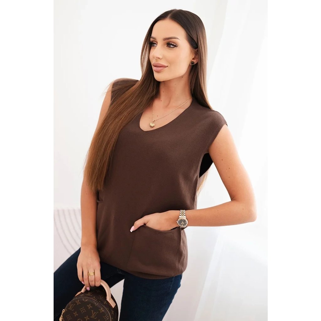 Dámský viskózový svetr R2013 bez rukávů s kapsami a V