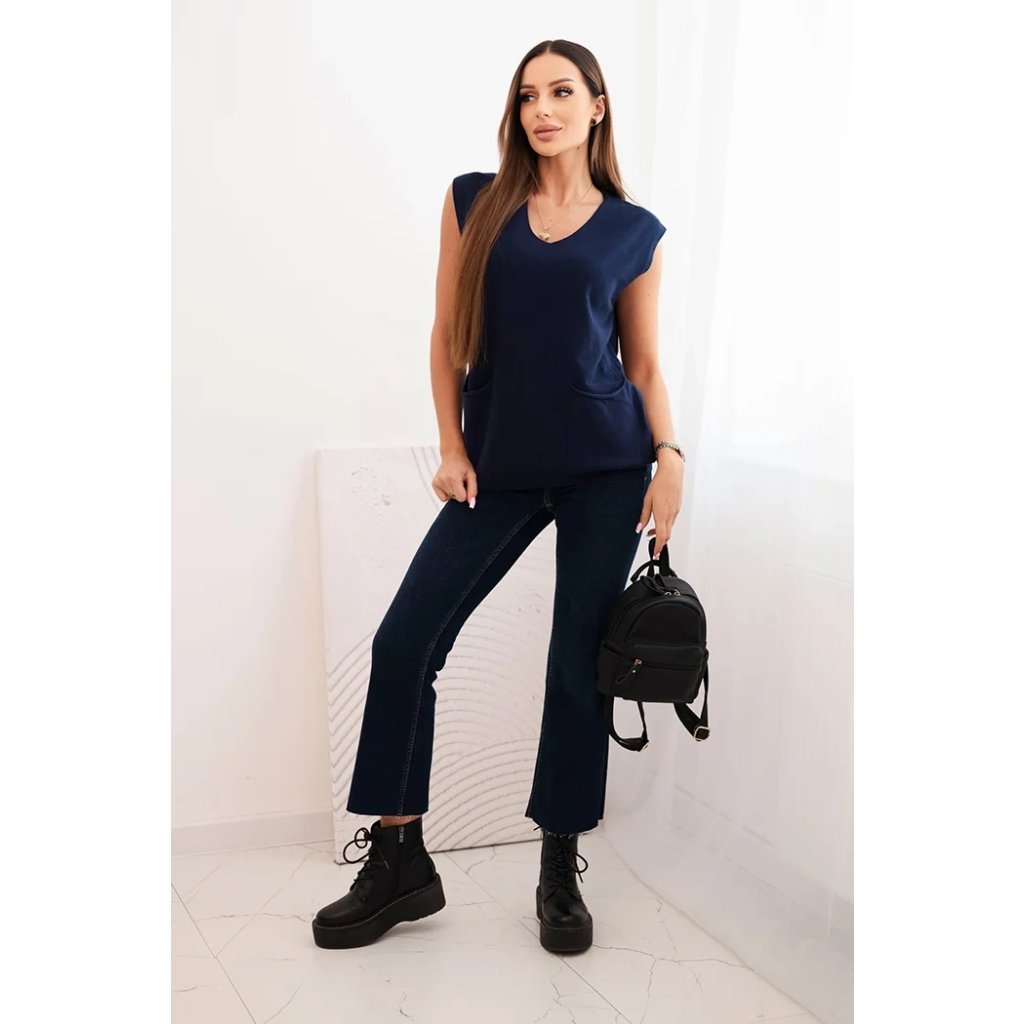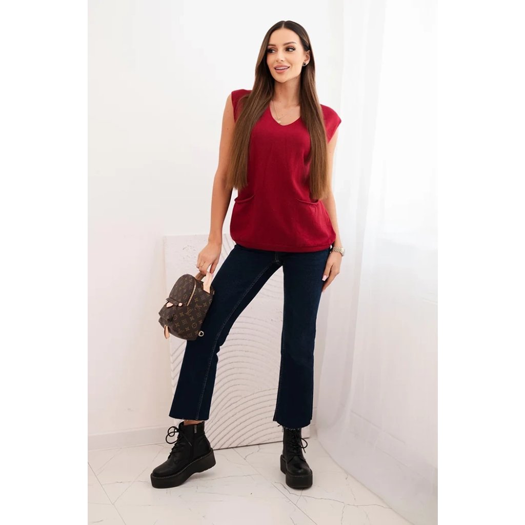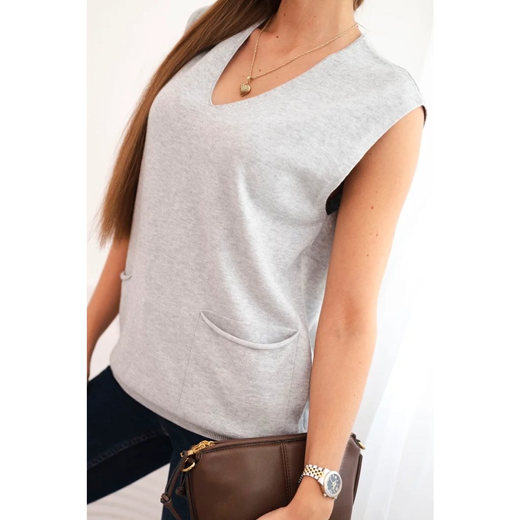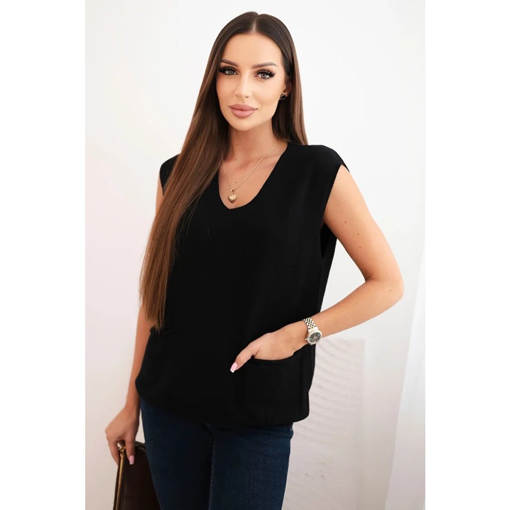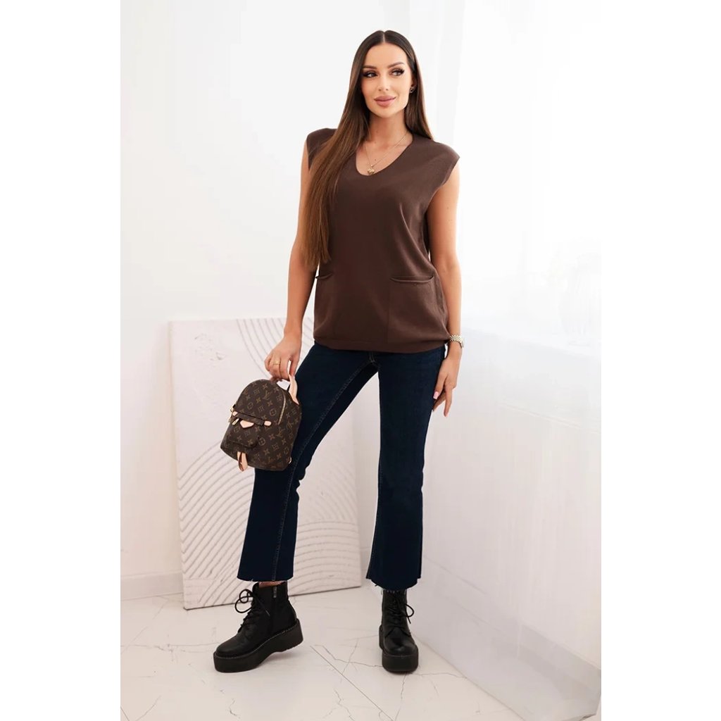 Dámský viskózový svetr R2013 bez rukávů s kapsami a V