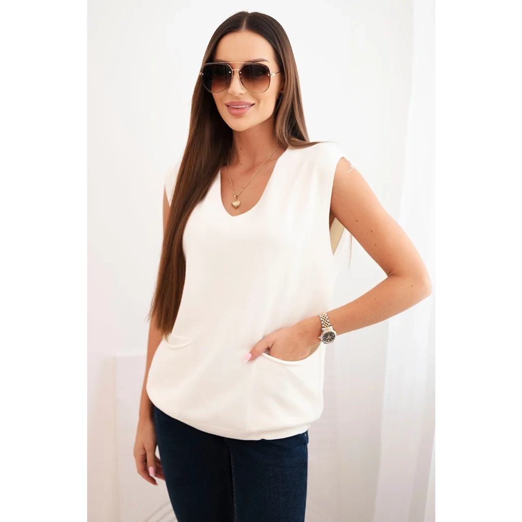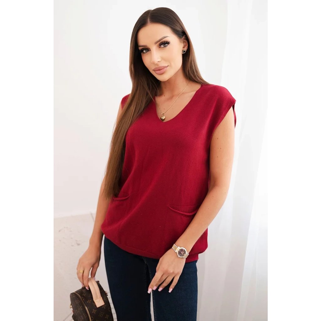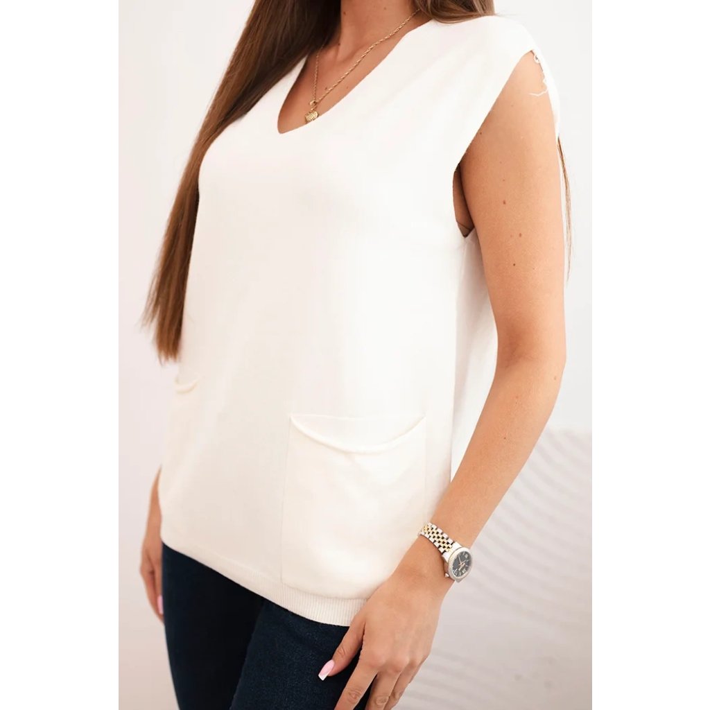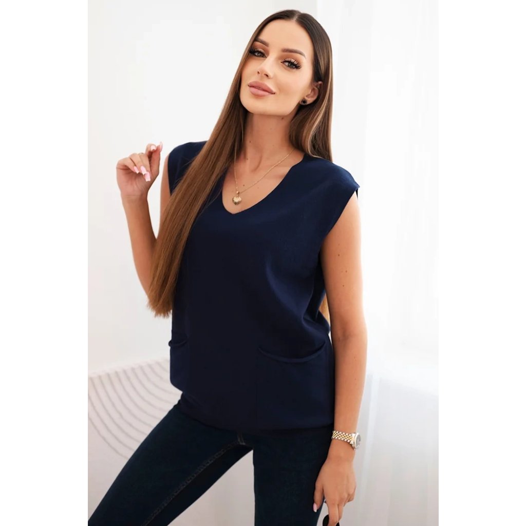 Dámský viskózový svetr R2013 bez rukávů s kapsami a V
