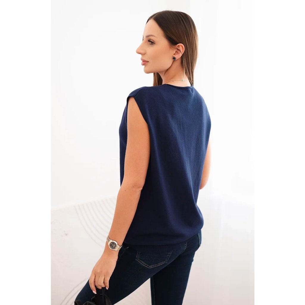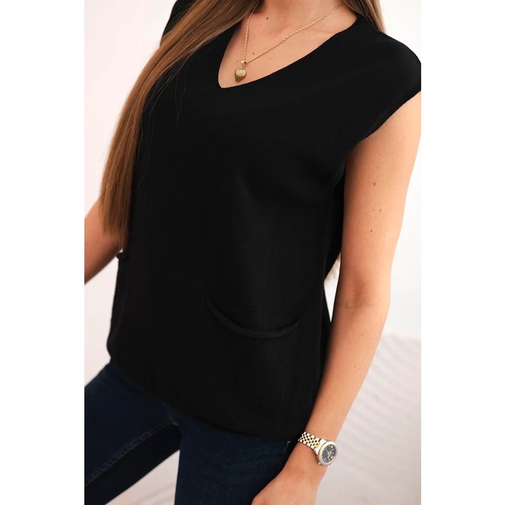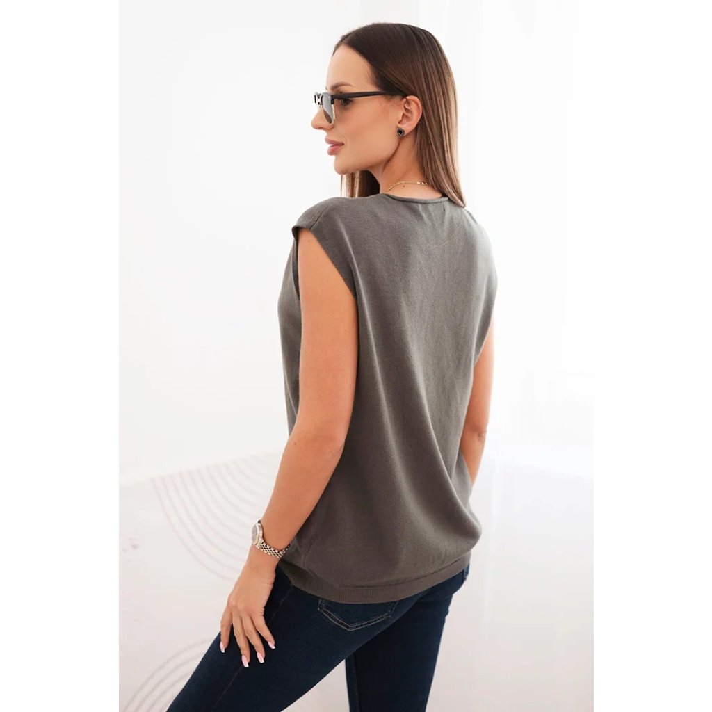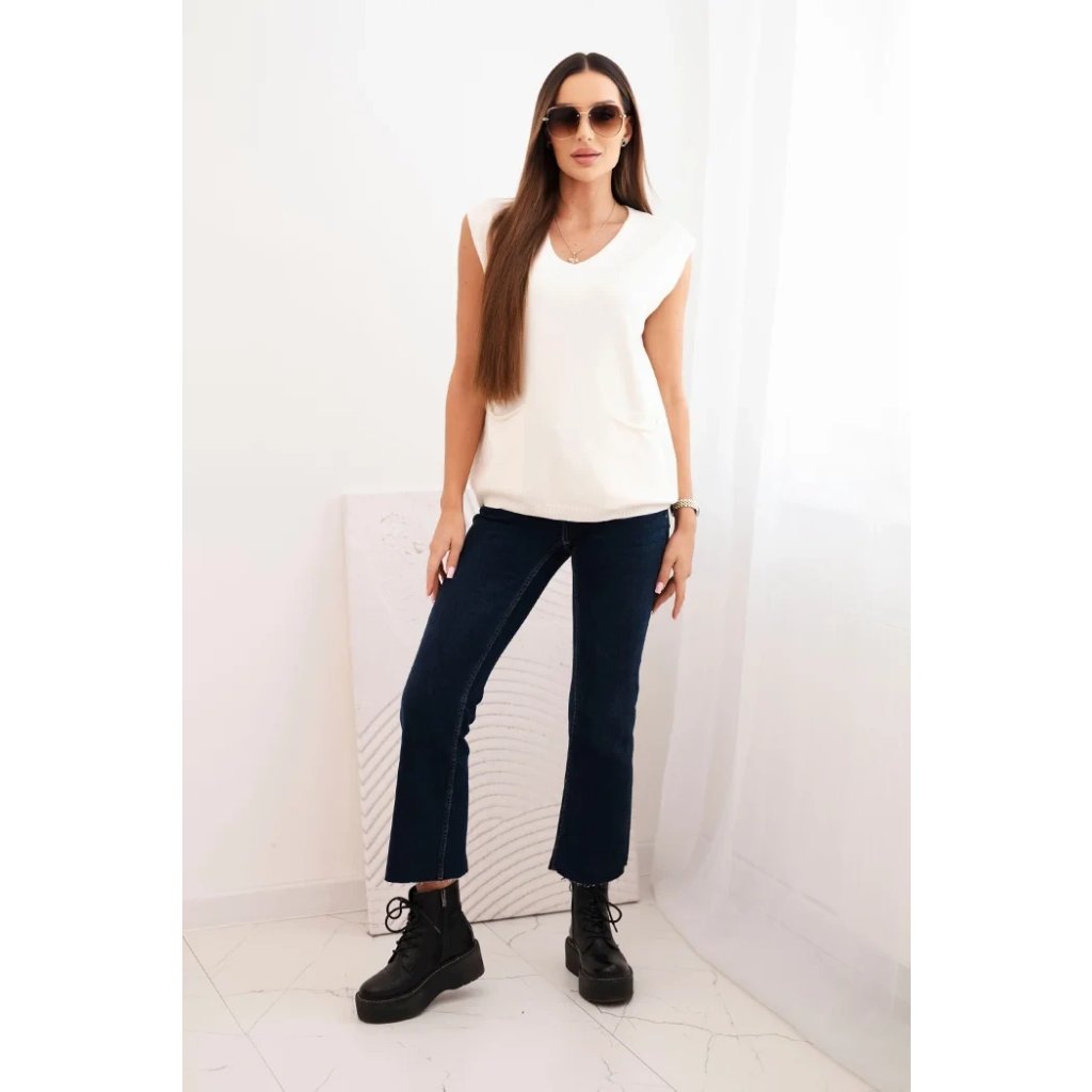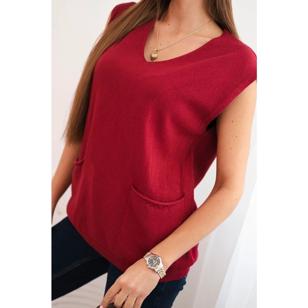 Dámský viskózový svetr R2013 bez rukávů s kapsami a V