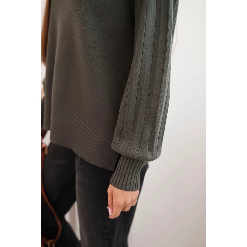 Dlouhý rukáv zakončený žebrovaným manžetou a rozparky po stranách mu dodávají charakter a činí model lehkým a moderním. Je to vynikající volba na každý den, do práce, stejně jako na víkendový výlet. Stačí vybrat oblíbené kalhoty nebo sukni a vytvořit módní a pohodlný vzhled.