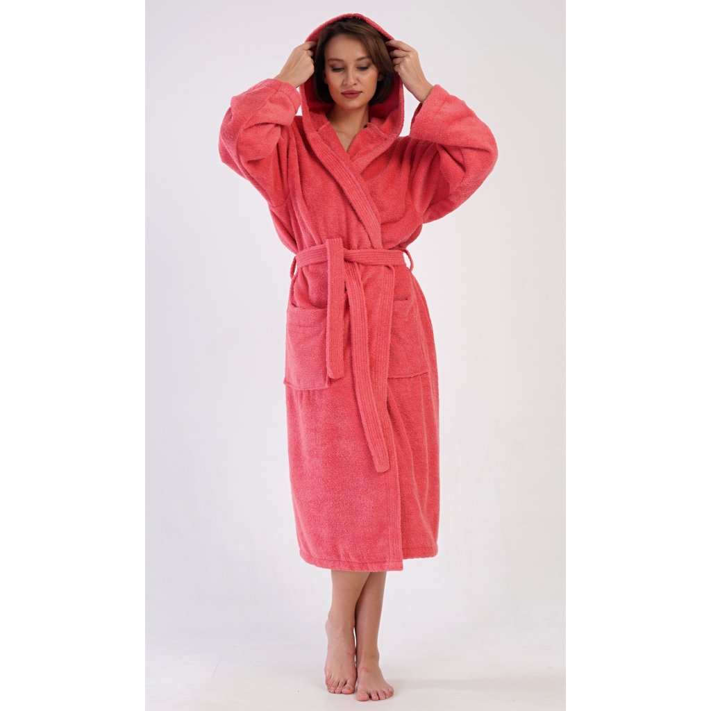 Dámský župan dlouhý s kapucí Jahoda