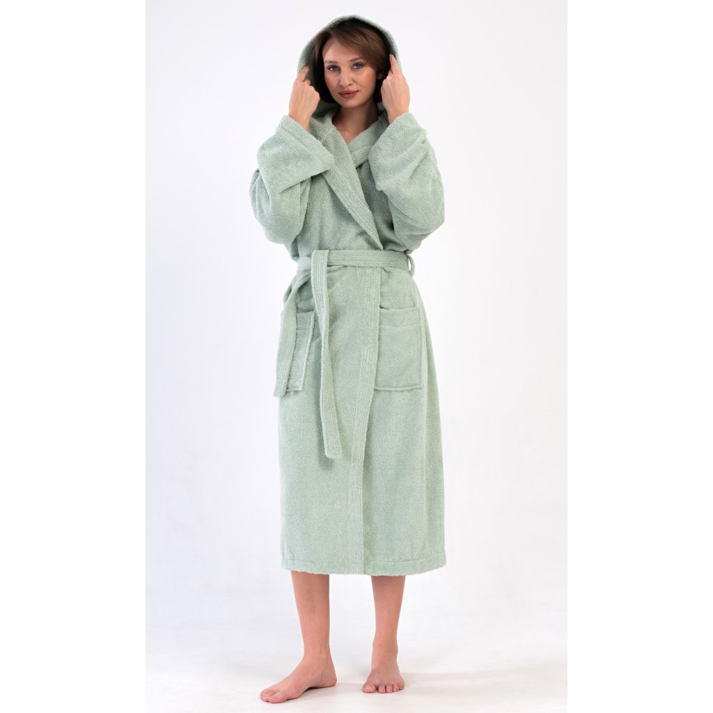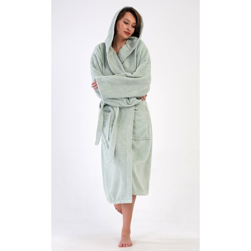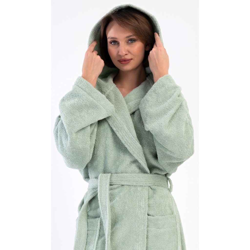 Dámský bavlněný froté župan s kapucí Máta. Dámský dlouhý župan s kapucí a páskem ke stažení je vhodný po koupeli i na povalování se doma na gauči. Froté župan má praktické kapsy, které oceníte při návštěvě wellness. Použitý bavlněný materiál je příjemný a poddajný na dotek.