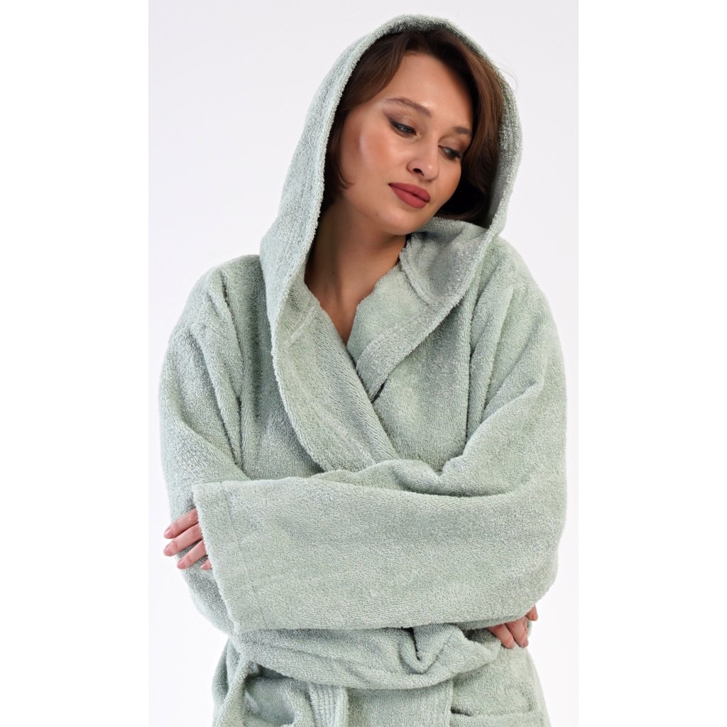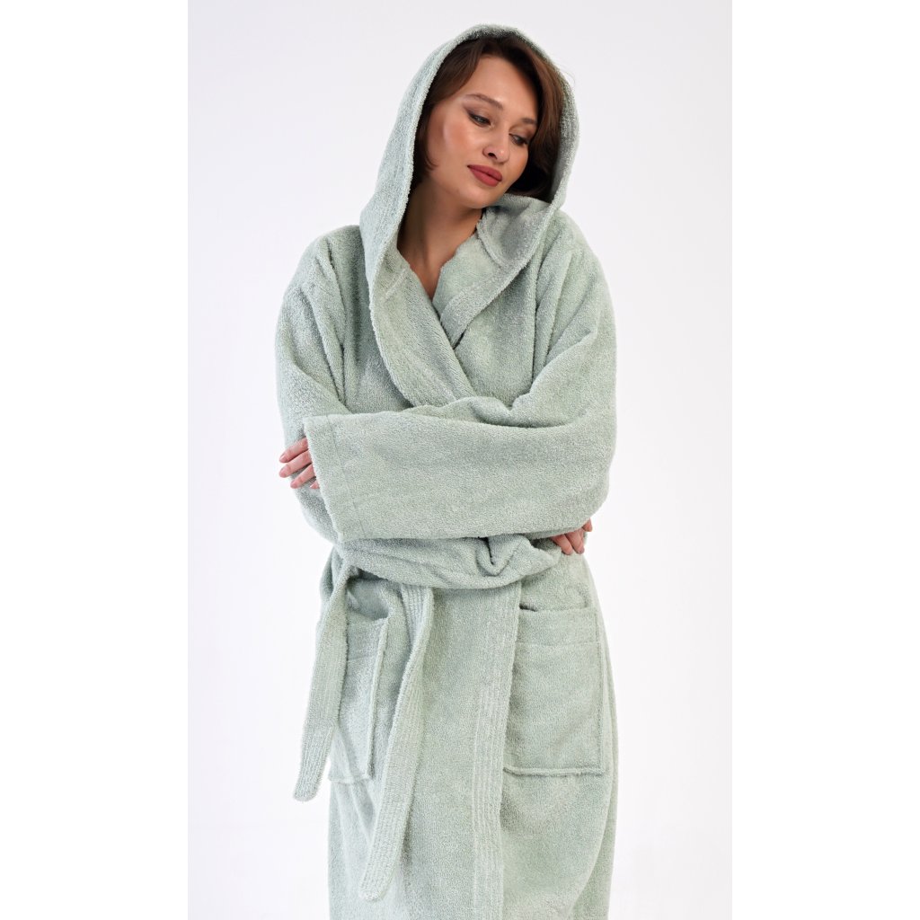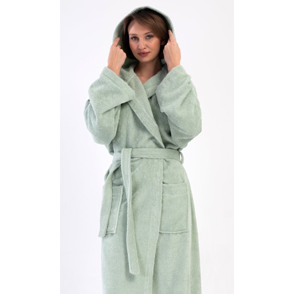 Dámský bavlněný froté župan s kapucí Máta. Dámský dlouhý župan s kapucí a páskem ke stažení je vhodný po koupeli i na povalování se doma na gauči. Froté župan má praktické kapsy, které oceníte při návštěvě wellness. Použitý bavlněný materiál je příjemný a poddajný na dotek.